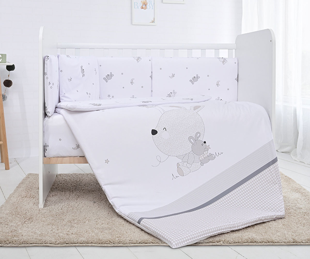 Lorelli - Бебешки спален комплект от 6 части Smile, Little Rabbits сиво
