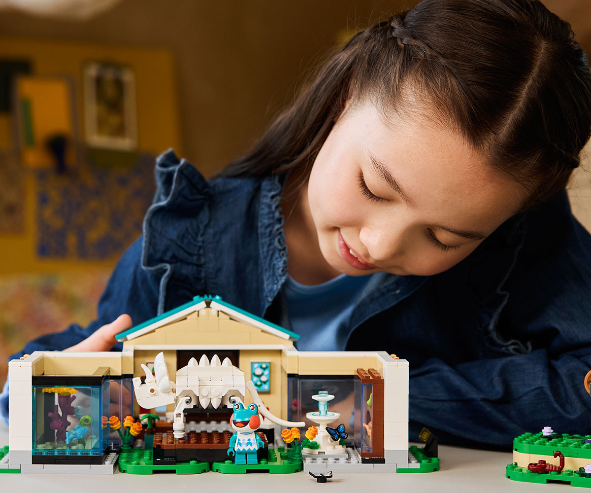 Феновете на поредицата видеоигри Animal Crossing™ и децата, които обичат природата, могат да се насладят на творческа игра със строителния комплект „Музейна колекция на Blathers“ (77056), идеален подарък с герои Nintendo® за момичета и момчета на възраст над 7 години. Тази играчка за построяване LEGO® пресъздава музея от поредицата видеоигри Animal Crossing. Децата могат да персонализират различните изложбени зони със своите находки. Те могат да използват лопата, за да открият липсващата опашна кост на трицератопса, да уловят риба за аквариума и да хванат пеперуди и пълзящи твари с мрежата. С регулируемите стени на панти и пренареждащите се елементи комплектът може да се променя за допълнителни възможности за игра. Има и фонтан и кафене Roost, където децата могат да се отпуснат с минифигурите на Blathers и Lily, преди да се впуснат в следващото си изследователско приключение сред природата. Младите строители могат да се насладят и на забавно цифрово конструиране с приложението LEGO Builder, където могат да мащабират и завъртат модели в 3D. Комплектът съдържа 543 части.