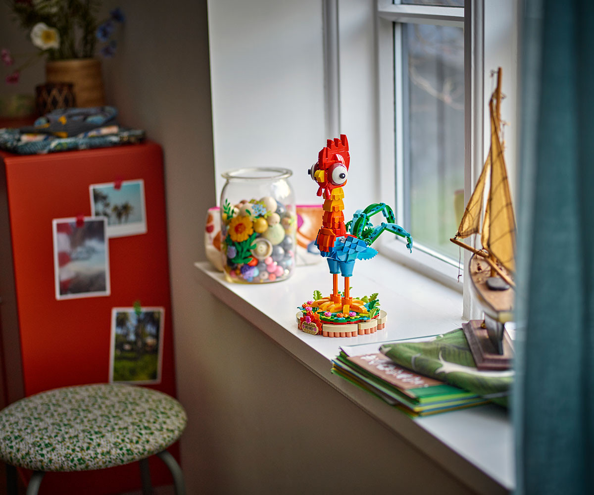Зарадвайте феновете на животните с конструктор, вдъхновен от филма на LEGO® ǀ Disney, с модел на петел с подвижна глава, крила и опашка на стойка.