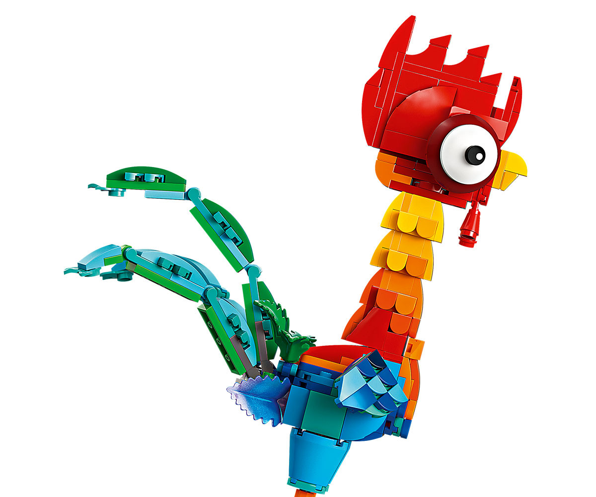 Постройте Хей Хей от Смелата Ваяна и Смелата Ваяна 2 на Disney! Създайте вдъхновен от филма модел за показване на цветния приятел на Ваяна, който попада във всякакви пакости, но почти винаги каца с клюна нагоре! След като построите Хей Хей, го сложете на стойката и го нагласете, като завъртите главата и движите крилата и опашката нагоре-надолу или настрани. Хвърлете му зрънца – той е вечно гладен!