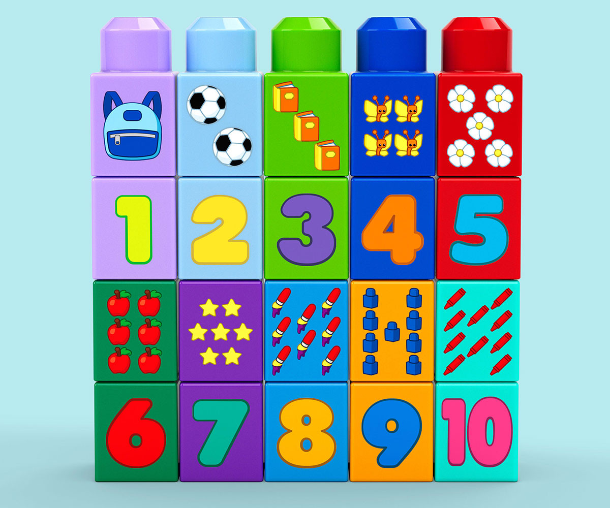 - Първи стъпки в броенето - блокчетата включват цифри от 1 до 10 и съответстващи илюстрации за съчетаване и броене;