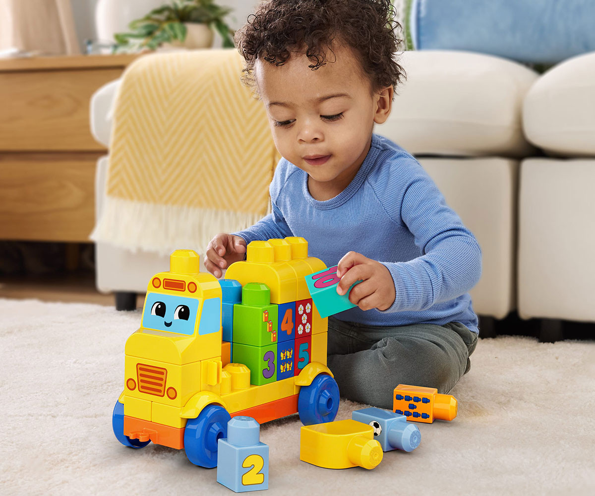 Запознайте малчуганите със света на броенето и подреждането с комплекта MEGA BLOKS автобус с блокчета и цифри. Тази игра с конструктор включва 45 части - подвижна основа с колела, подвижен пътен знак „Стоп“ и големи блокчета с цифрите от 1 до 10 и цветни декорации. Децата могат да се учат да броят, докато подреждат блокчетата и съчетават цифрите с правилните картинки. Комбинирайте с други комплекти MEGA BLOKS за още повече строителни приключения!