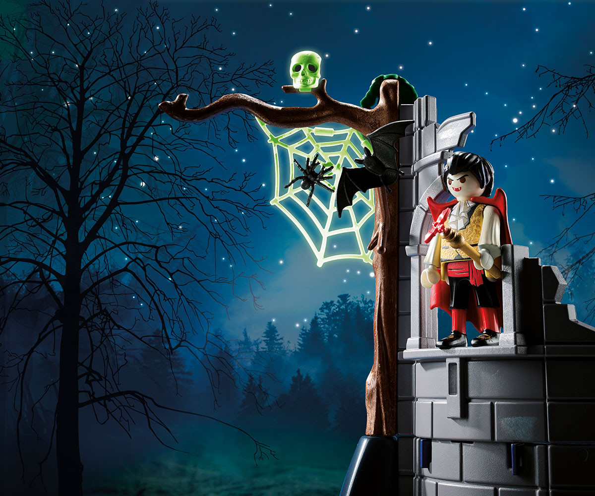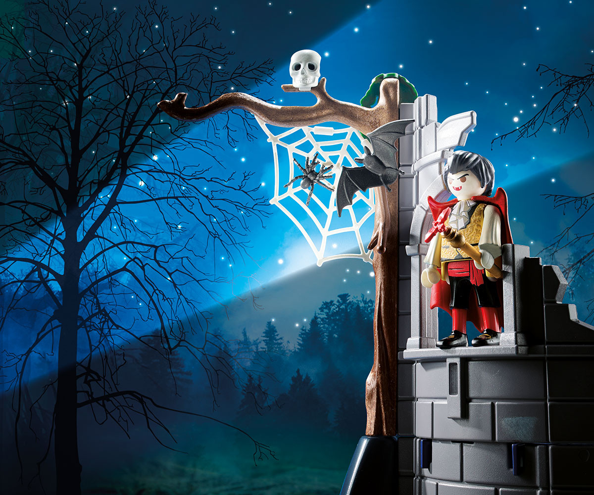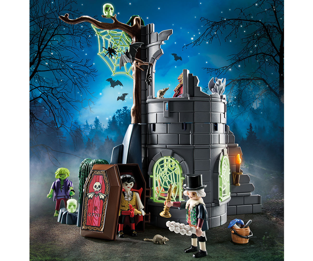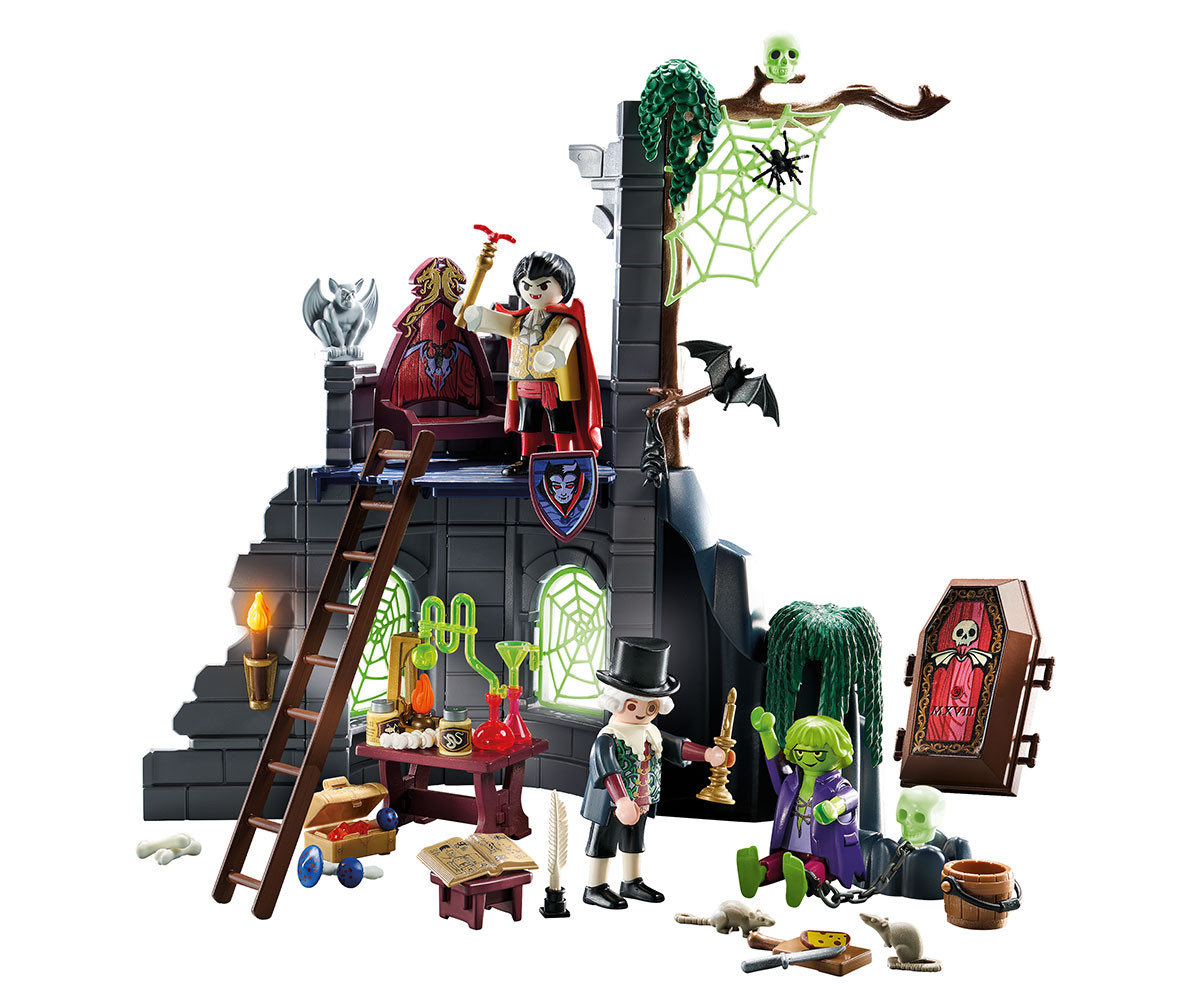 Влез, ако смееш! С комплекта PLAYMOBIL Руини обитавани от духове децата ще се потопят в ужасяващо забавни приключения! Сред древните руини се крият Дракула, зомби и страховити прилепи, които чакат да оживеят след полунощ. Идеален сет за любителите на мистерии, фантазия и ролеви игри!