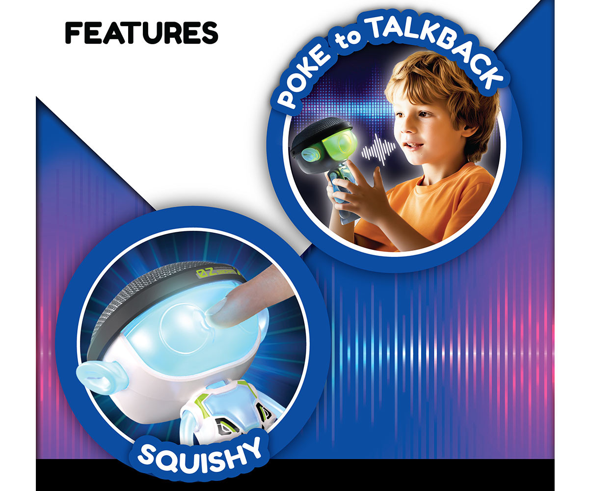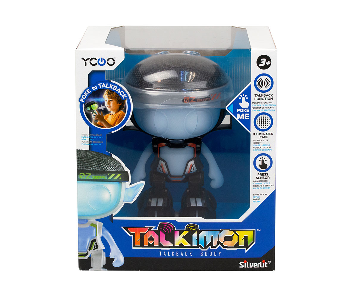 Silverlit Talkimon – Говорещ робот с LED лице и гласови ефекти! Кажи „Здрасти“ на Silverlit Talkimon – твоя нов приятел робот, който обожава да говори и забавлява! Talkimon има светещо LED лице, което променя цветовете си, както и меки уши и гъвкави ръчички, които правят играта още по-забавна и безопасна. Записвай и възпроизвеждай весели съобщения с вградената playback функция, която изкривява гласа ти по различни и смешни начини. А за още повече смях Talkimon разполага с 5 забавни звукови ефекта, които ще разсмеят малки и големи. Идеален подарък за деца, които обичат роботчета, гласови ефекти и интерактивна игра!