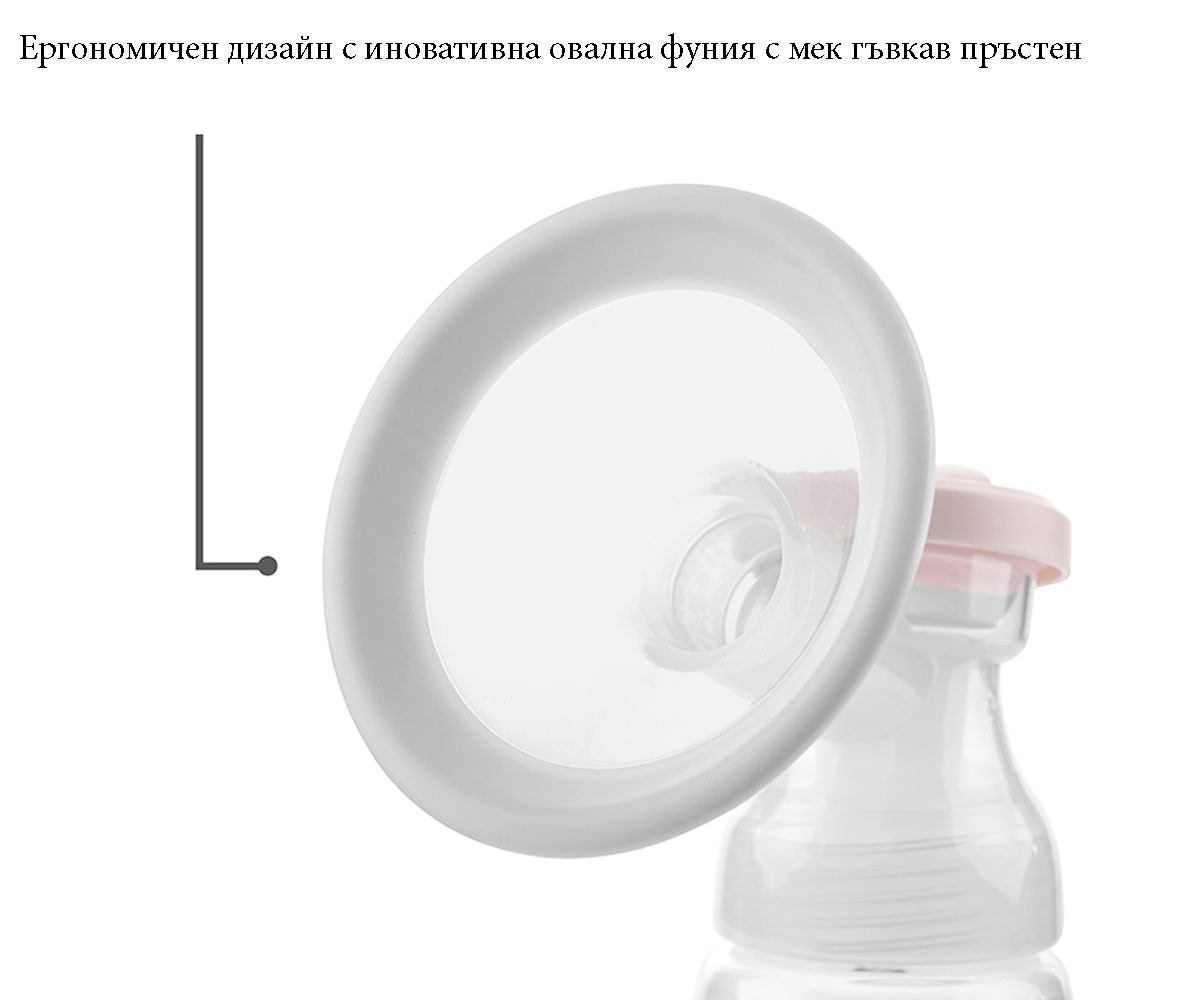 - Ергономичен дизайн с иновативна овална фуния с мек гъвкав пръстен;