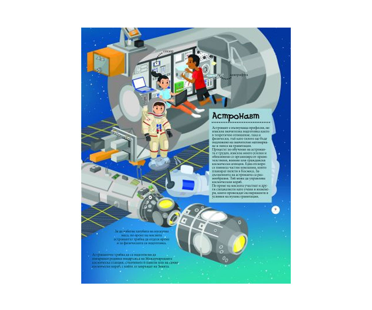 Прекрасно илюстрирана книга, в която ще откриете почти всички професии – от най-обикновените до най‑необичайните. Те са много различни, точно както са различни нашите възможности и предпочитания. А ти коя професия харесваш от представените в книгата? Може да си помечтаеш с каква работа ще се заемеш, когато пораснеш.
