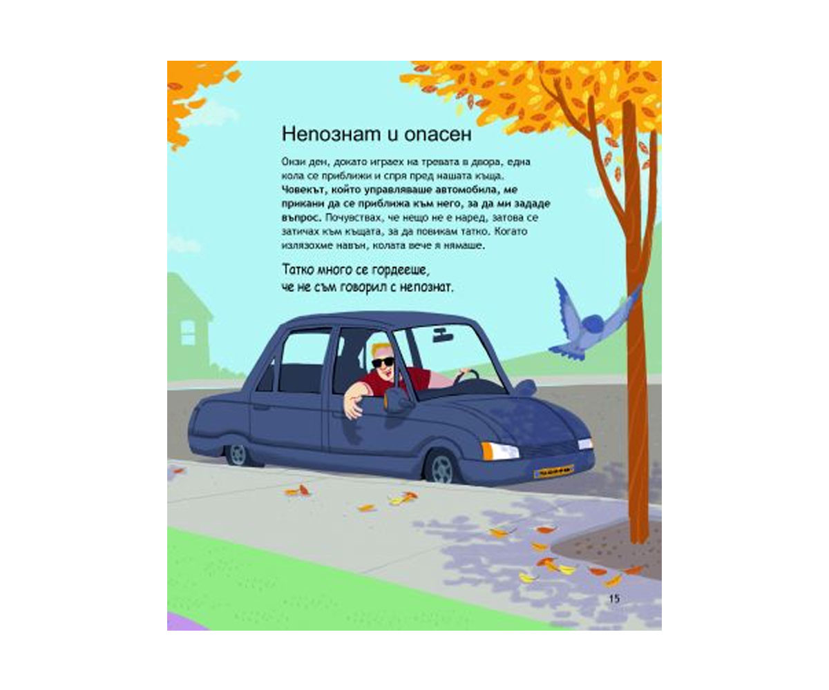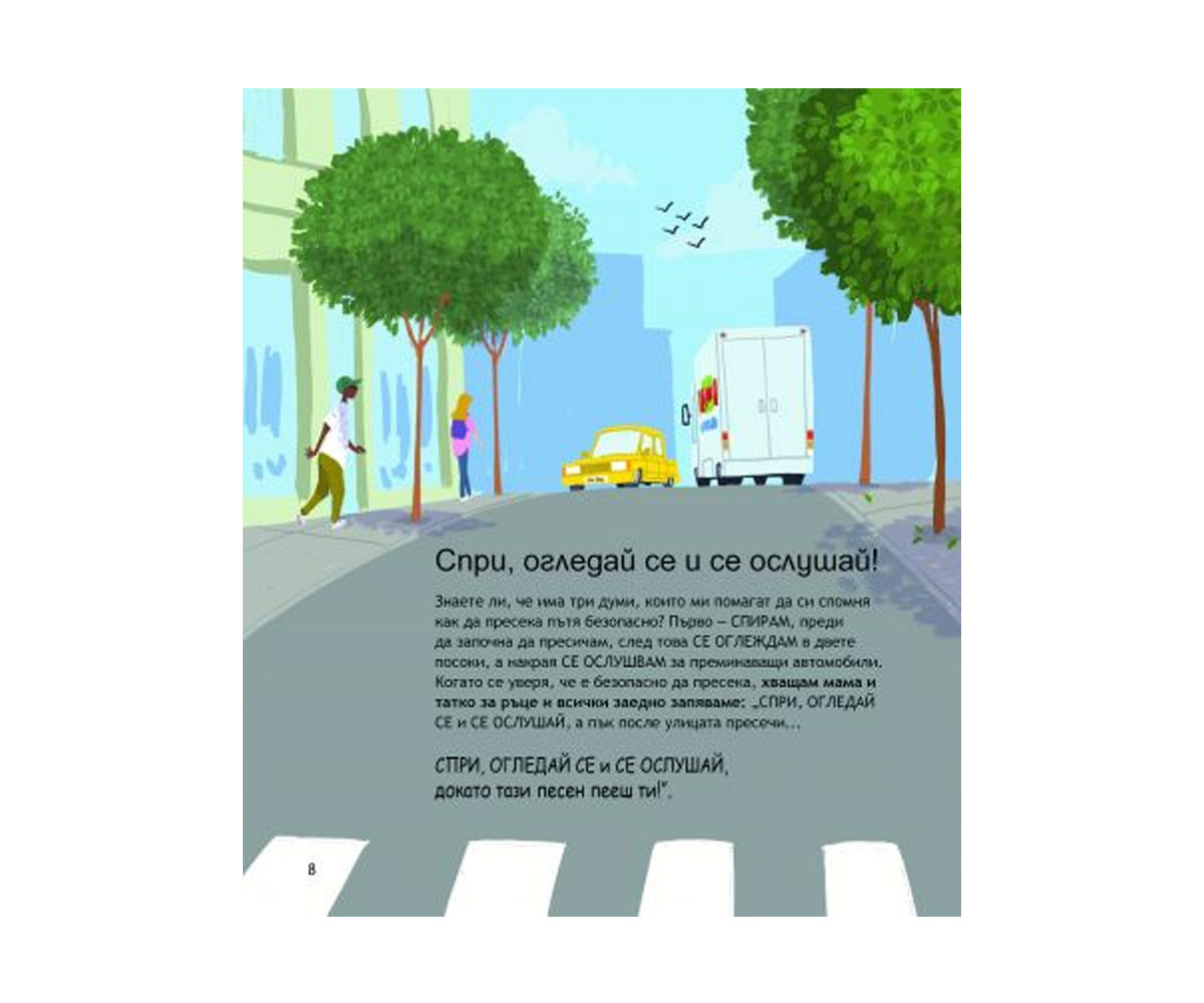 В тази книга ще се запознаеш с една много важна тема − безопасността. Ще откриеш препоръки как да се държиш в различни ситуации − на пътя, около водните басейни, в колата, в природата, дори и вкъщи. Огледай се, ослушай се, влез да плуваш с приятелче, сложи си колан, опитай се да забавиш крачка и да ходиш, вместо да тичаш − това са само част от съветите, които те очакват в тази забавна и образователна книга.