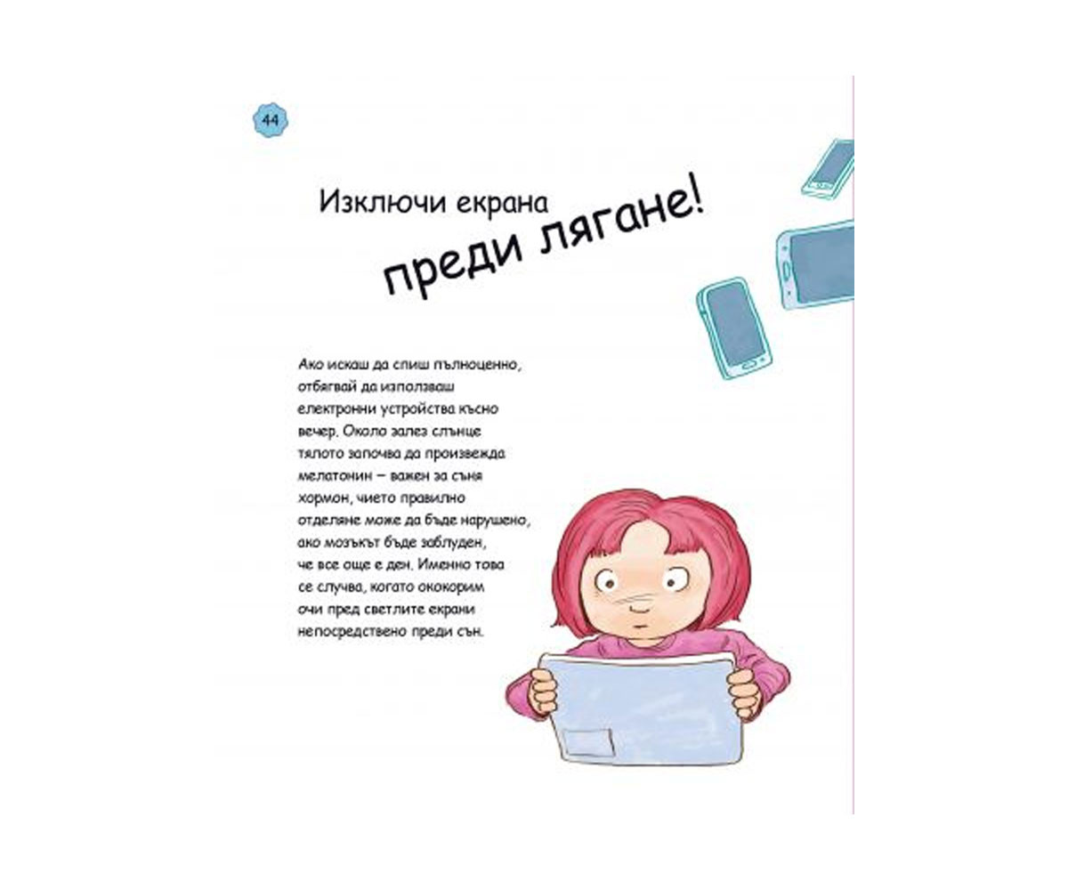 Всички знаем колко е важно да поддържаме тялото и ума си здрави, но за целта трябва да сме добре информирани.Тази прекрасно илюстрована книга поднася по достъпен начин препоръки за по-пълноценен живот, които всяко дете може да превърне в навик. Хигиена, спорт, качествен сън, балансирано хранене - за да бъдем здрави и силни утре, трябва да започнем с грижите днес.