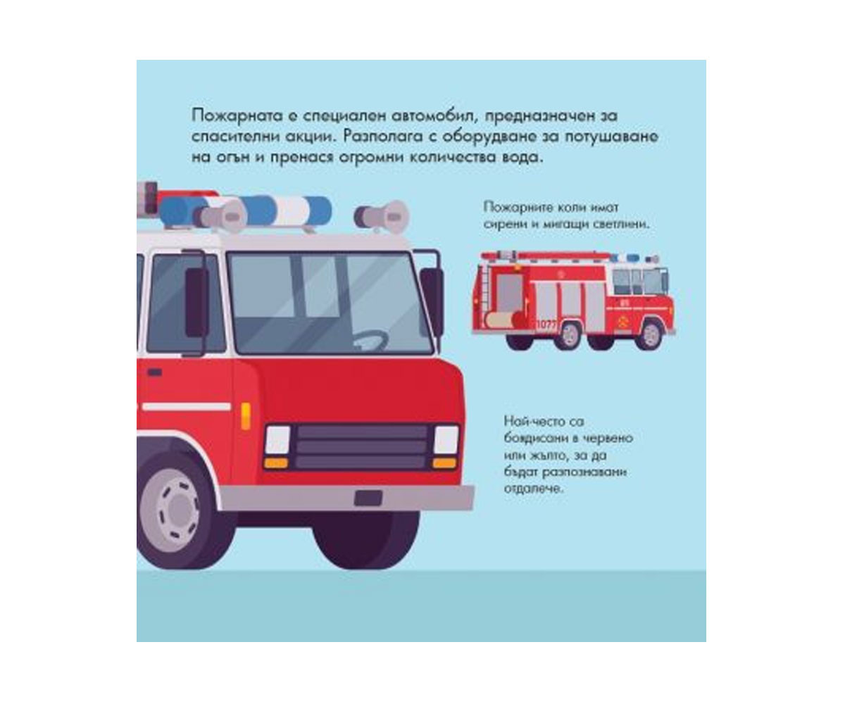 Панорамни книжки за най-малките. Какво е тук-тук? Какво е пожарна? Каква скорост достигат болидите от „Формула 1“?