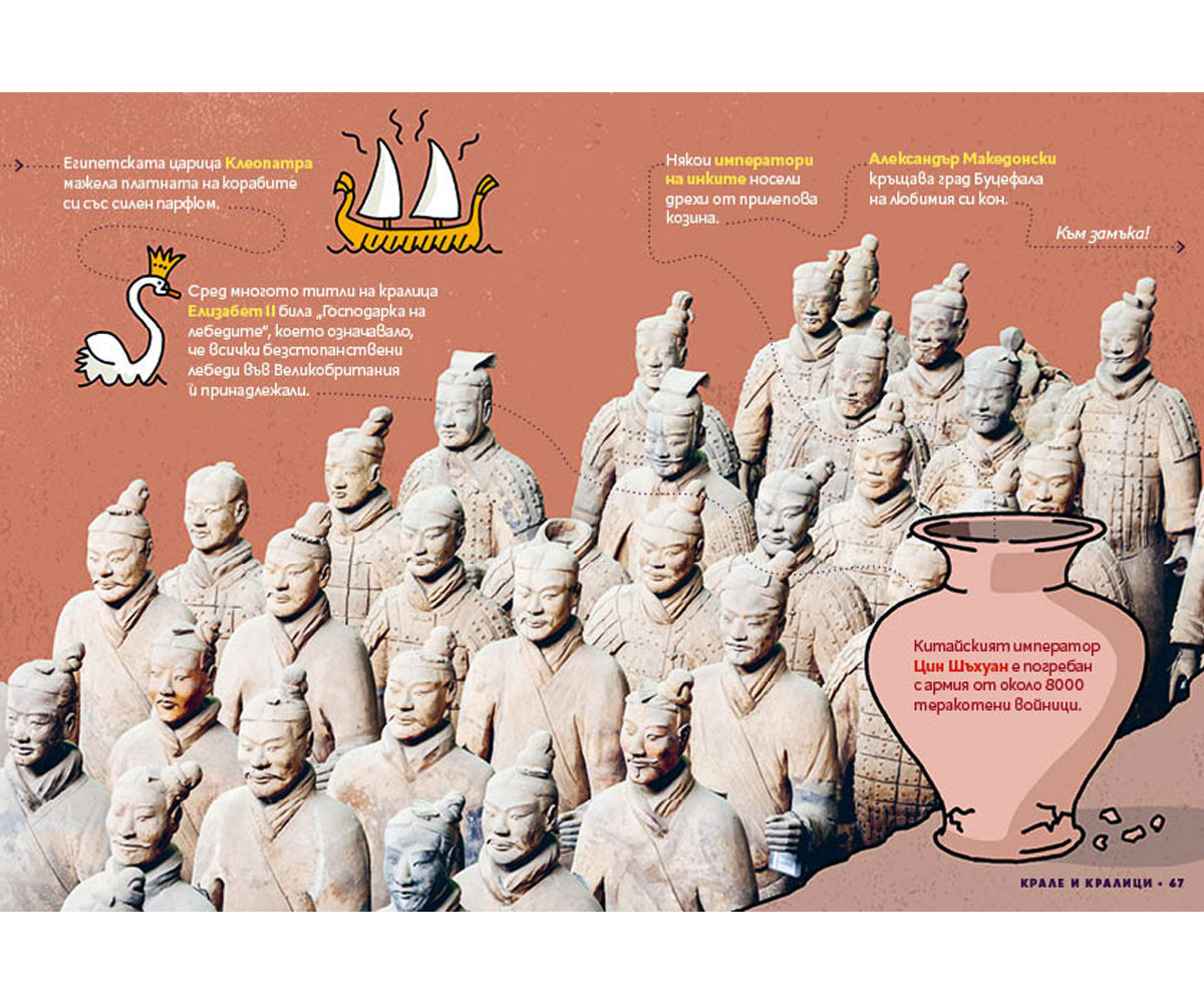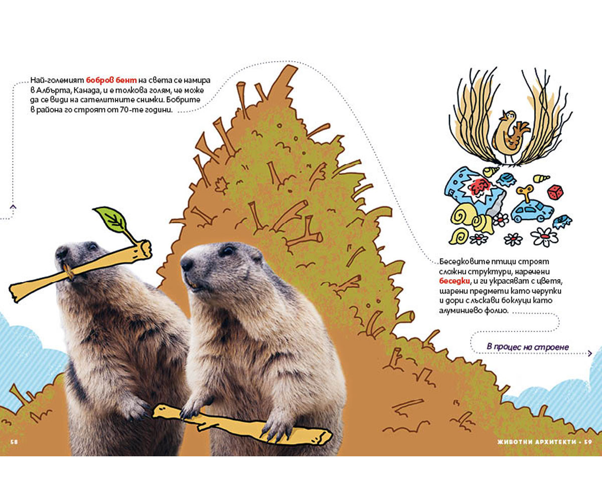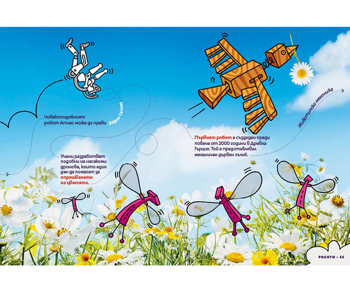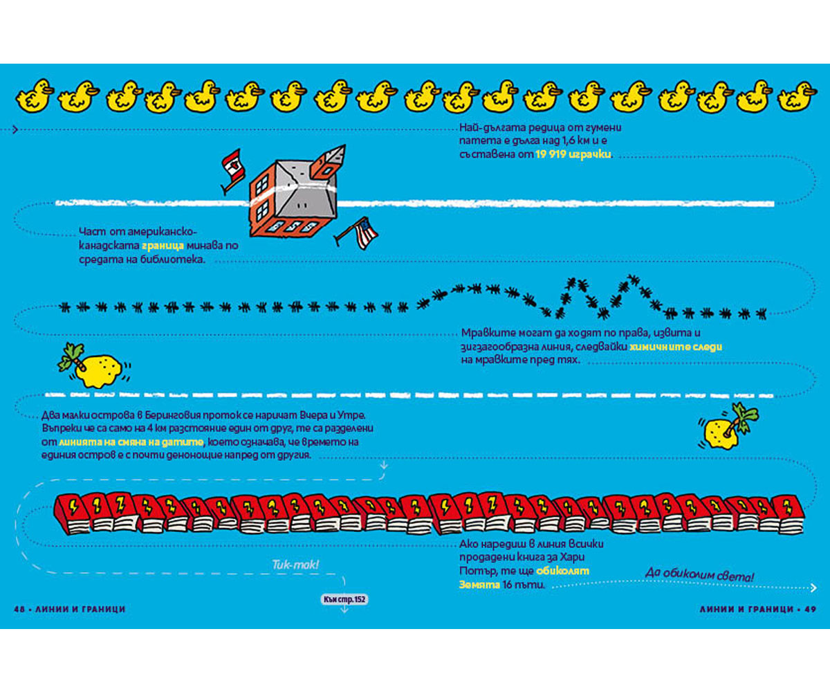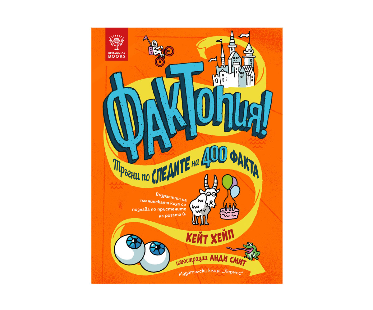 Всички факти са свързани по изненадващ и забавен начин. Тръгни по следата, която прескача от факти за динозаврите на факти за яйцата, за закуските, за козите. Обърни внимание, че понякога следата се разклонява и ти дава възможност да прескочиш на напълно различна (но свързана) част от „Фактопия!“. Къде ли ще те отведе любопитството ти?