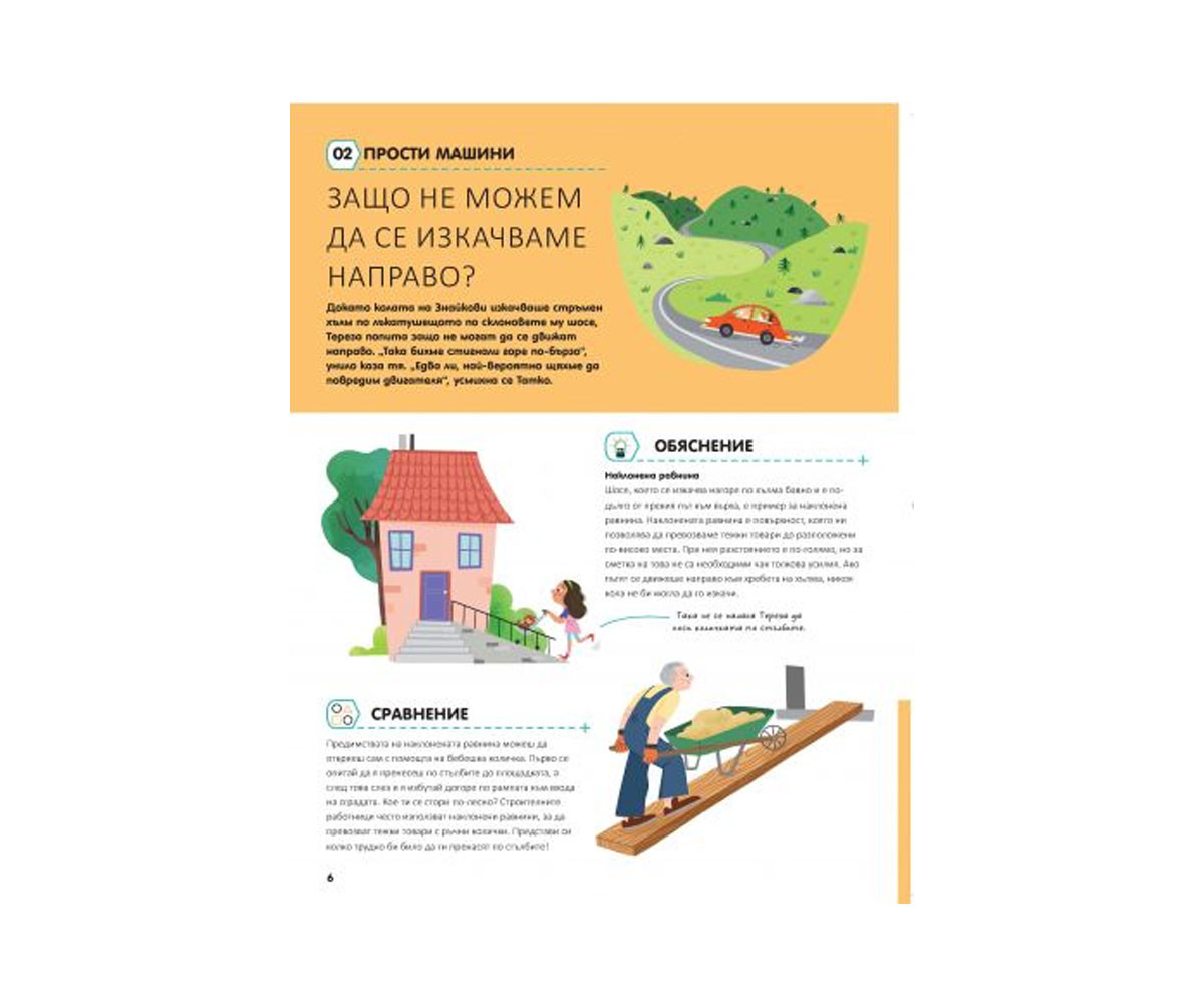 Химия, физика… Казват, че тези науки са скучни и сложни. Не са интересни за деца, които искат развлечения и приключения! Ами ако е точно обратното? Ами ако химията и физиката СЪЗДАВАТ чудесния, завладяващ свят, в който обичаме да играем и да изследваме с любопитство? Ами ако тези науки са ПРИЧИНАТА за всички смайващи чудеса около нас? Да, така е, сериозно. Защо не отлитам в Космоса, когато скачам на батут? Как мога да преместя огромен камък? Защо тестото във фурната се надига? И къде отива солта, когато я смеся с вода? Хайде заедно да се запознаем с научните закони и с инженерните достижения по най-естествения начин – като се срещнем с тях в ежедневието. Тереза, Виктор и цялото семейство Знайкови се готвят за забавно приключение. Тръгни с тях и се потопи сред чудесата на науката, които ни заобикалят. Това е истинският живот. Хайде да се научим да го разбираме!