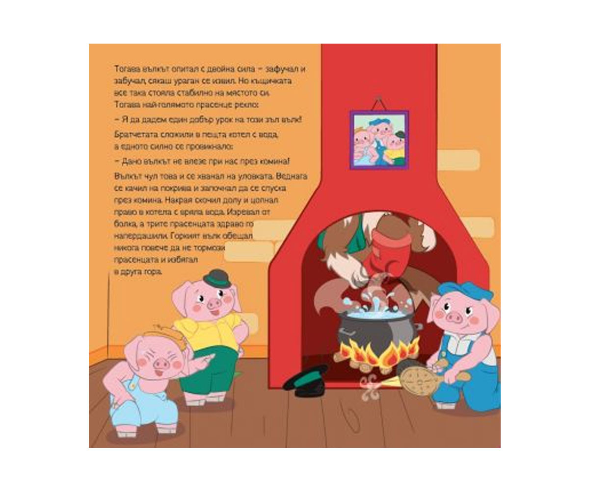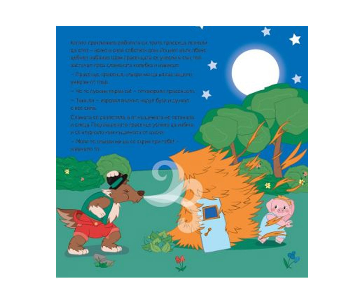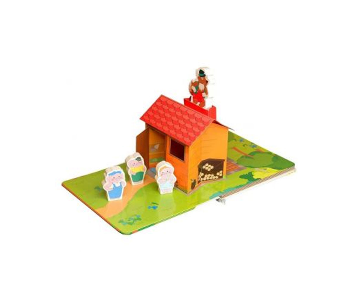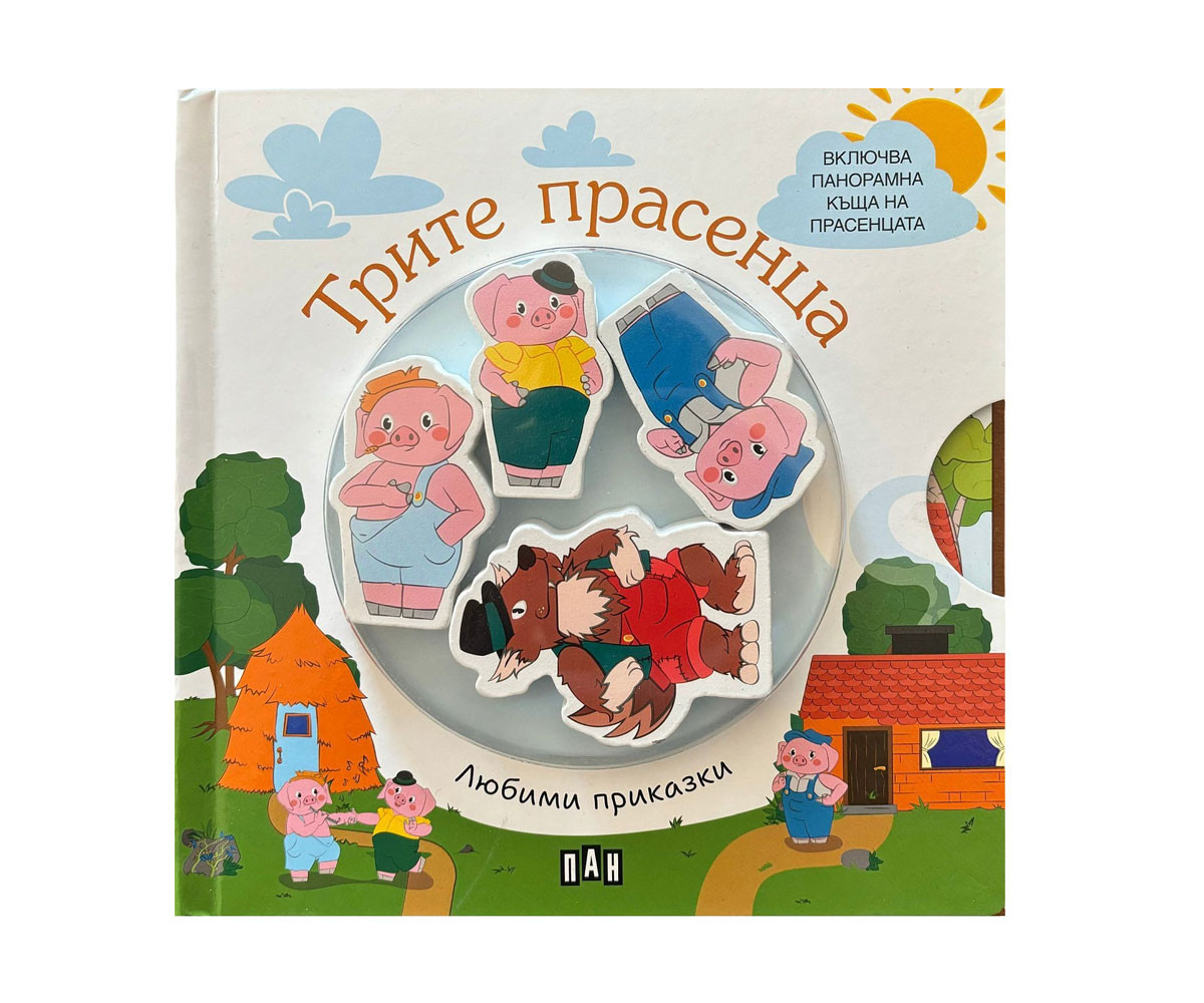 Тази книга ще ви срещне с любими и незабравими герои - трите прасенца и лошия вълк. Ще научите какви къщички са си направили прасенцата и колко са се страхували от вълка. А дали той е успял да влезе в някоя от къщичките, ще разберете, като прочетете приказката до края. Освен чудесно илюстрираната приказка, тази книжка съдържа и четири дървени фигури на основните герои. Има и специален разтвор, където може да разположите фигурите и да пресъздадете сцени от приказката. Така забавлението ще е пълно!