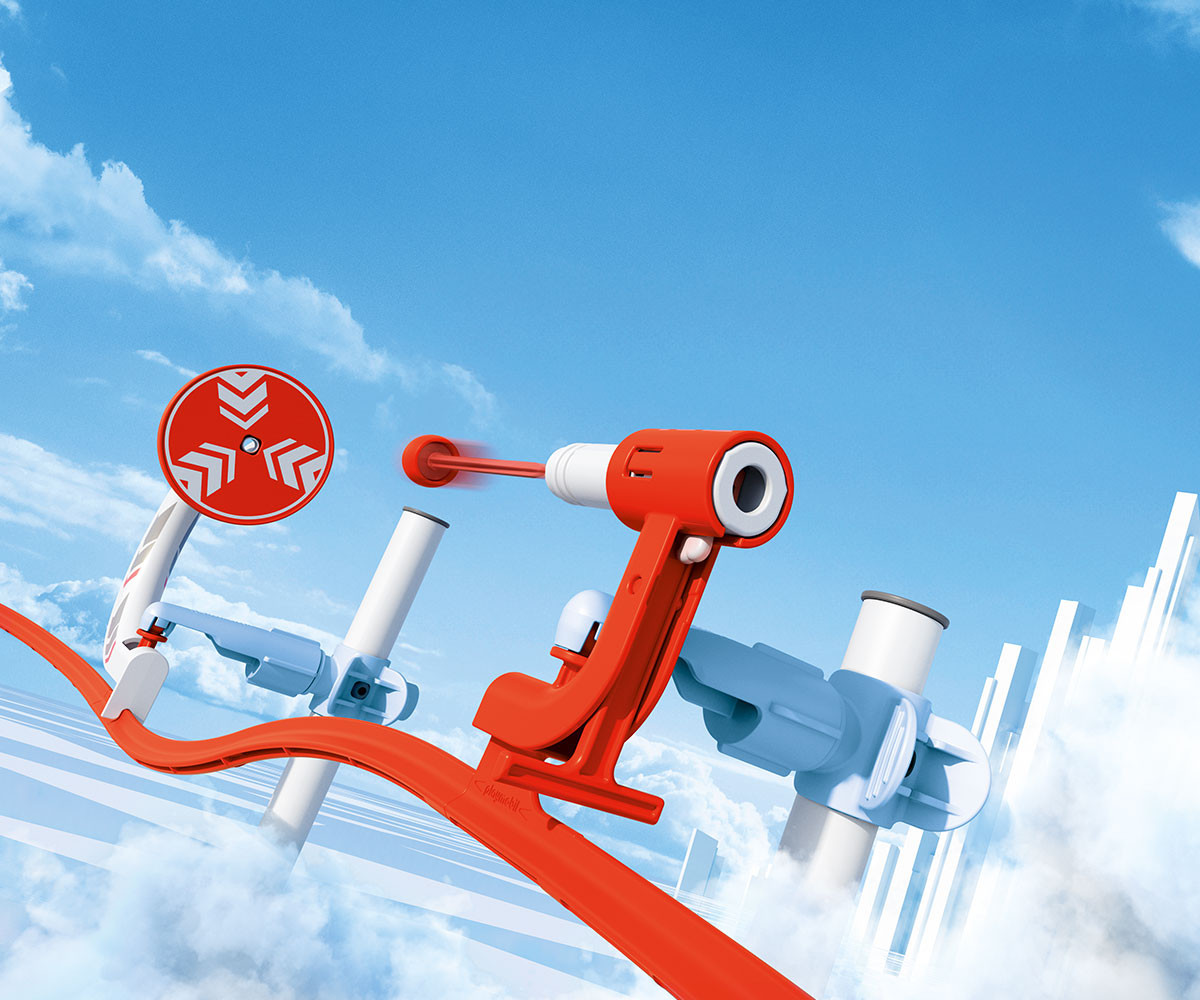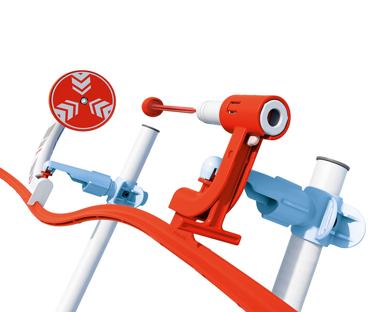 Готови ли сте за още по-вълнуващо действие по вашето PLAYMOBIL SKY TRAILS трасе? С разширението Пистов бластер вашият