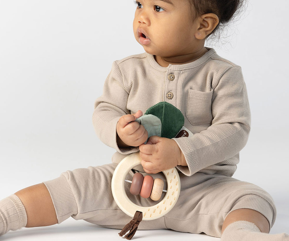 Очарователната дървена дрънкалка във форма на Цвекло от Еко колекцията Garden of Adventures забавлява бебето у дома и в движение. Съчетава естествени текстури и нежни звуци, които насърчават изследването с ръчички и подпомагат развитието на фината моторика.
