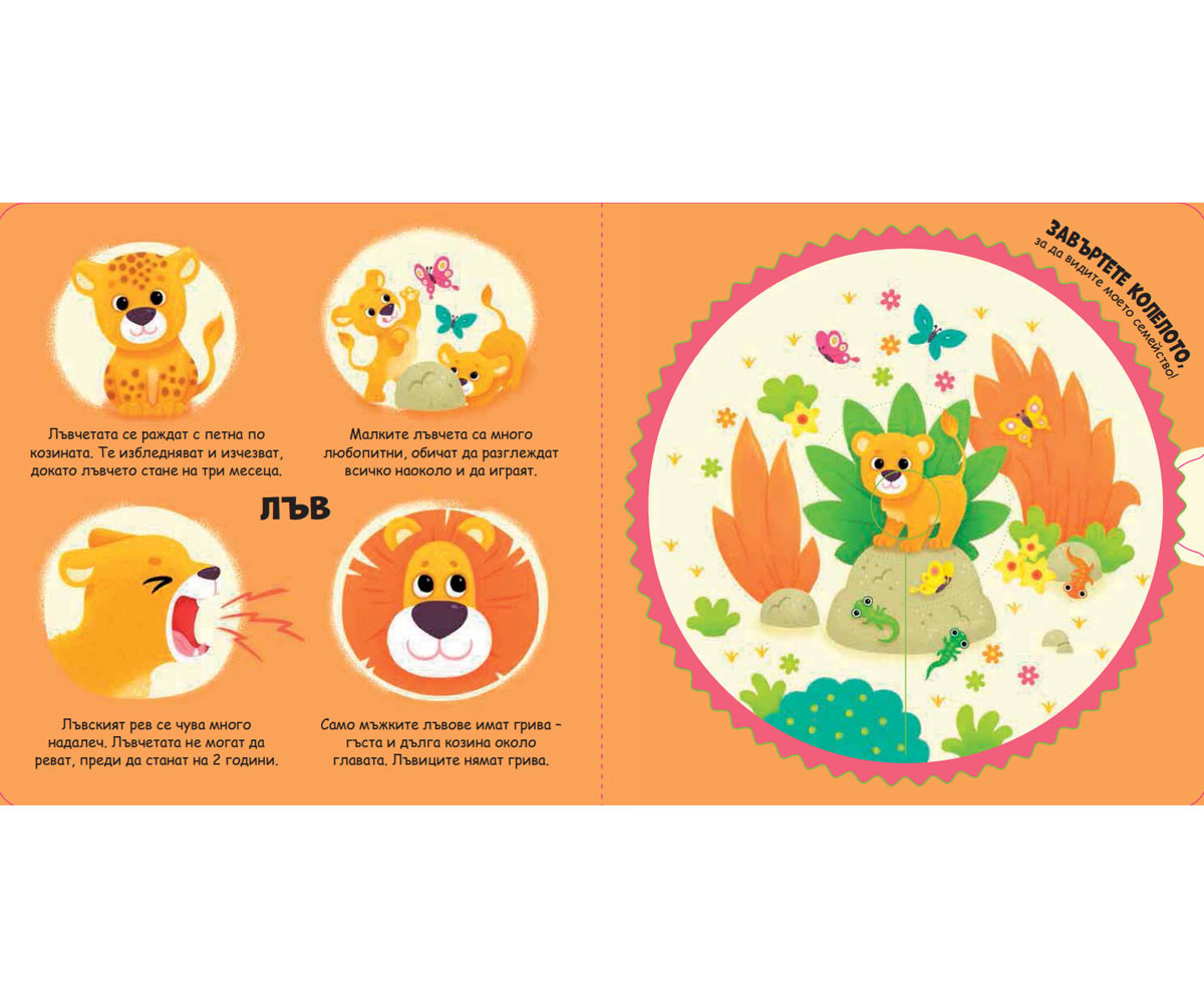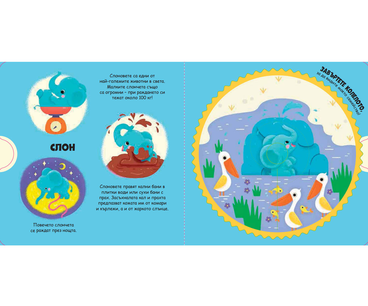 Запознайте се с различни животни и научете повече за тях. Завъртете петте вълшебни диска и пред вас ще се разкрият животните с техните семейства.