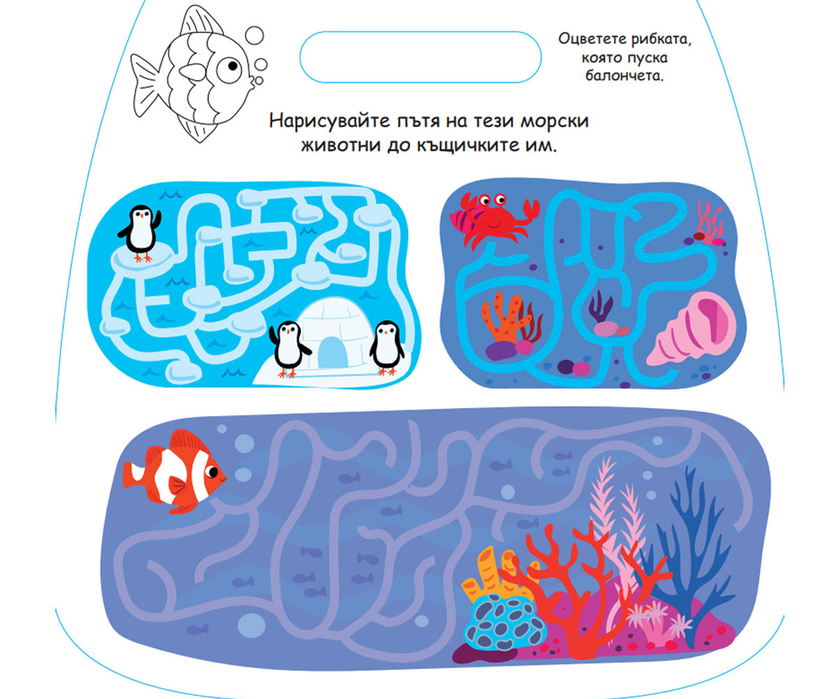 Разнообразните игри в тeзи книги ще подпомогнат подготовката на децата за училище. Включените задачи тренират умението на децата да задържат вниманието си, да запомнят и да наблюдават, развиват речта и основни мисловни процеси, усъвършенстват фината моторика на ръката и подготвят за писане, подпомагат усвояването на броенето и дават нови знания за заобикалящия свят.