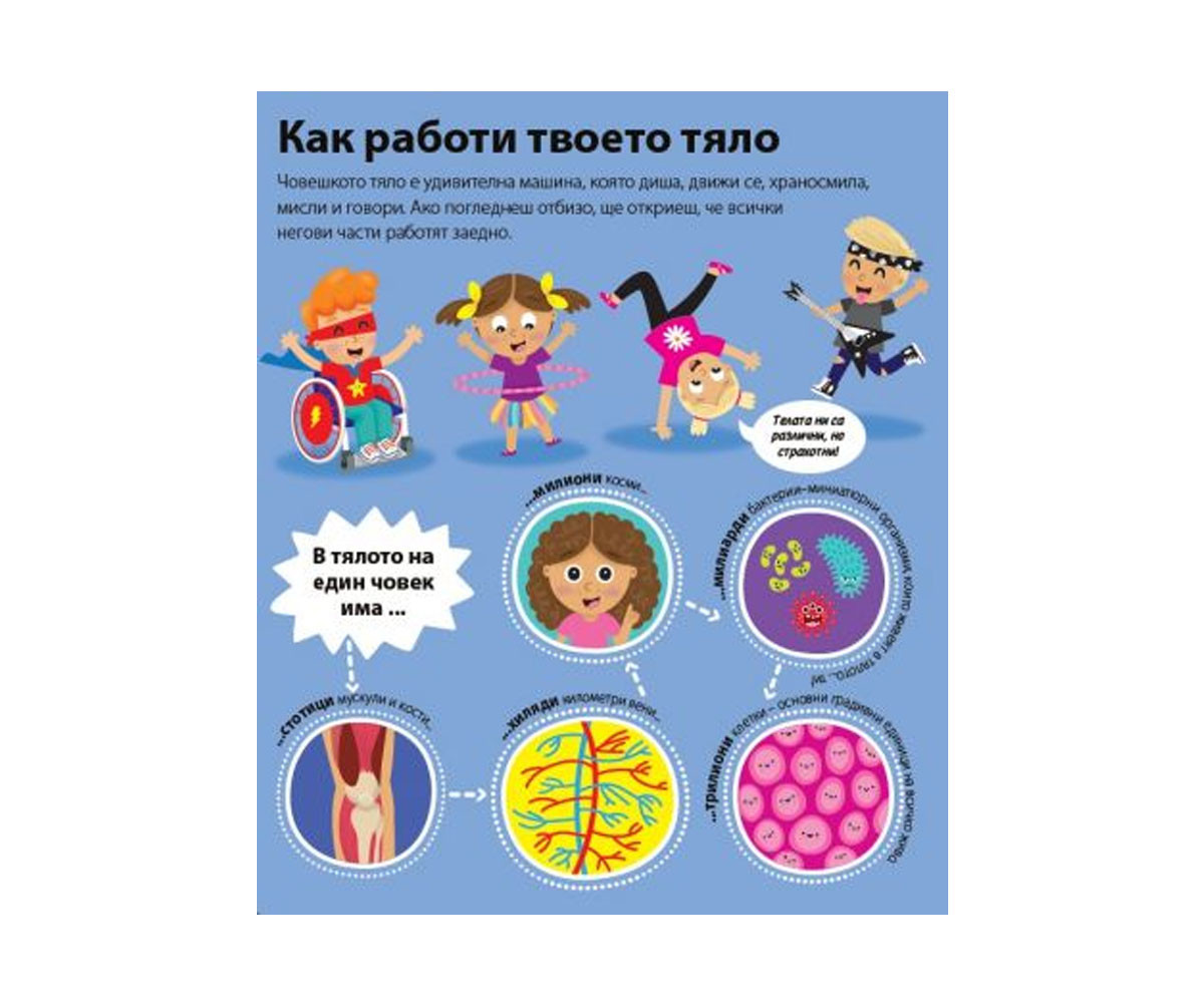 Научи как работи невероятното човешко тяло! С помощта на над 50 капачета ще разбереш къде отива храната, след като я изядеш, какво има под кожата ти и кой е командният център на твоето тяло.