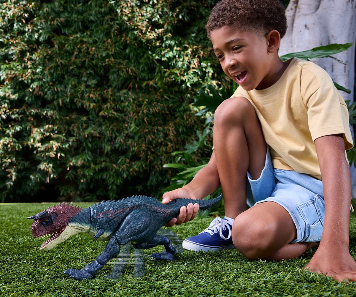 - С дължина приблизително 43.5 см и височина приблизително 18 см, с отличителните си рога, този Карнотавър е впечатляващо допълнение към всяка Jurassic World колекция за фенове над 4 години;