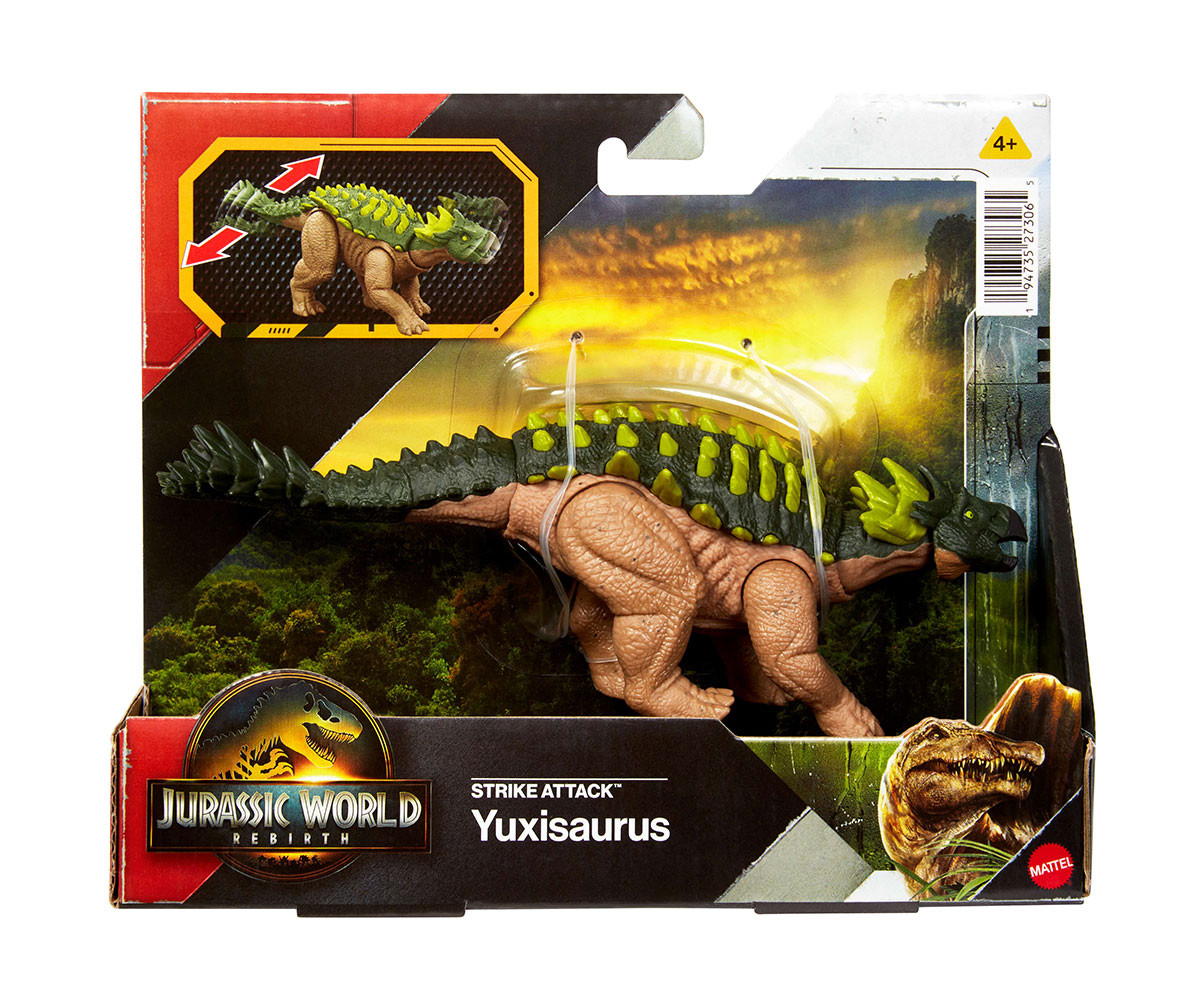 - Едно точно попадение! Подгответе се за приключения и екшън с динозаврите Strike Attack, вдъхновени от Jurassic World Rebirth. Всеки динозавър разполага със специфична атака, характерна за вида му;