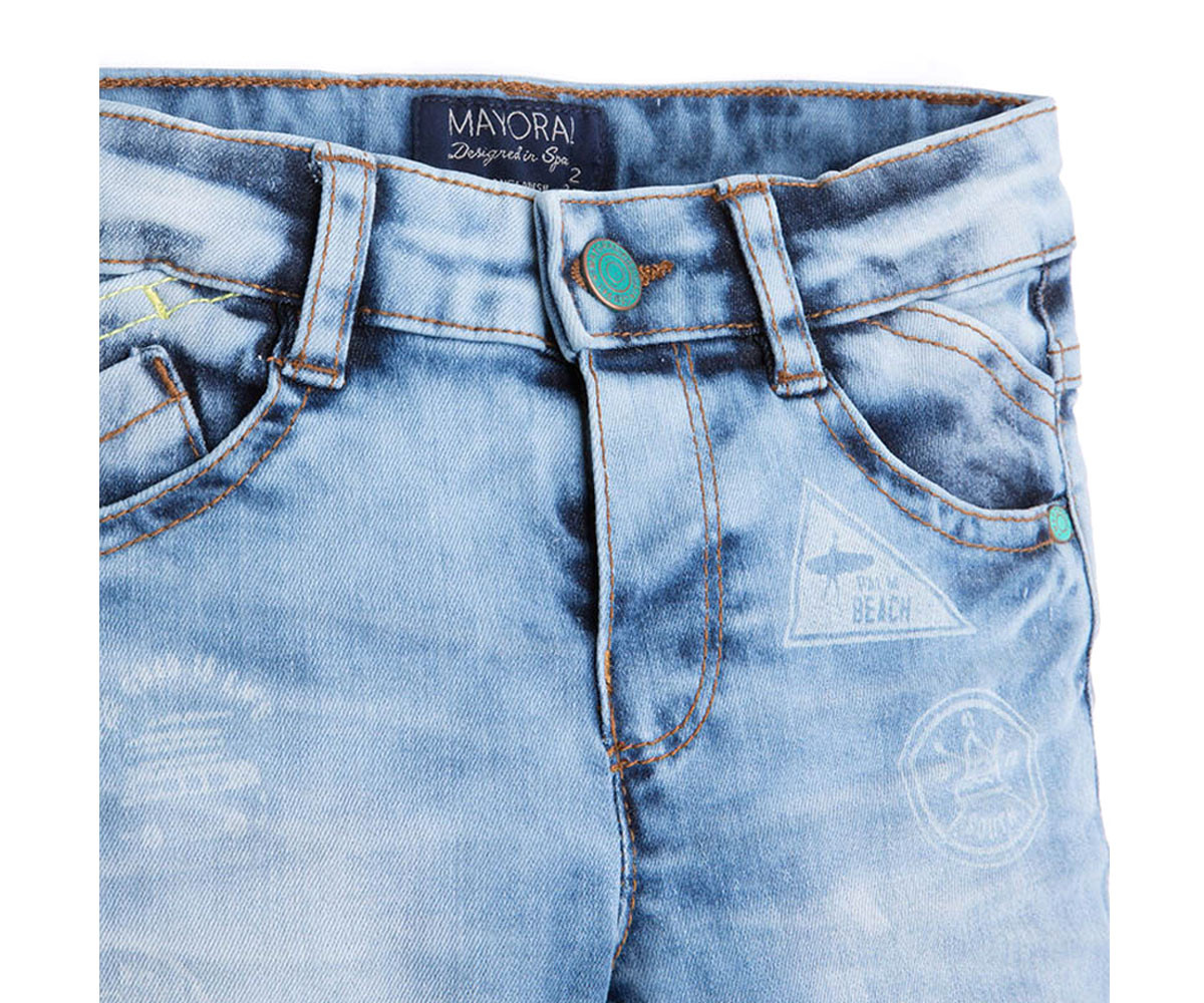 Детска дрешка Mayoral - Дънкови бермуди печат момче, цвят 5, 2-9 г., ръст 92-134 см. Състав: 76% Памук, 22% Полиестер, 2% Еластан.