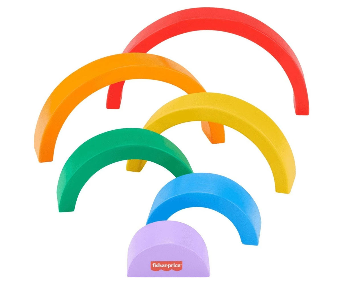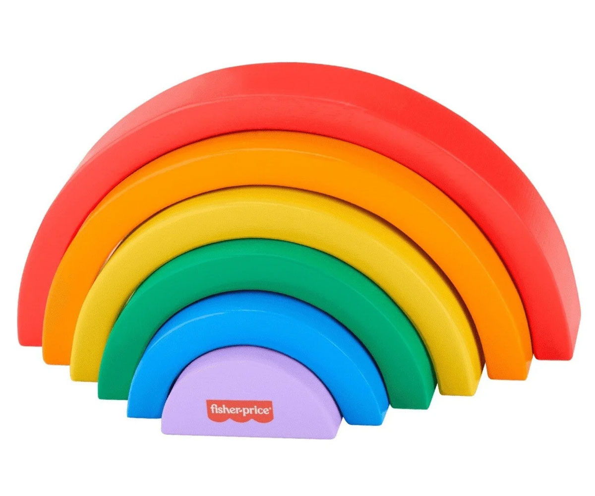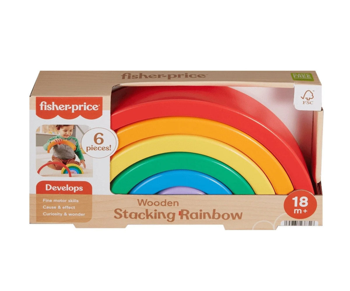 Малчуганите ще се забавляват с много игри за развитие на умения с дървената играчка за подреждане Дъга от Fisher-Price®. Шестте дебели и лесни за захващане дъгови арки помагат на детето да се запознае с цветовете, размерите и как нещата се съчетават. Всяко парче е изработено от дърво, добито от добре управлявани гори с FSC® сертифициране и помага за развитието на фини двигателни умения, докато децата играят.