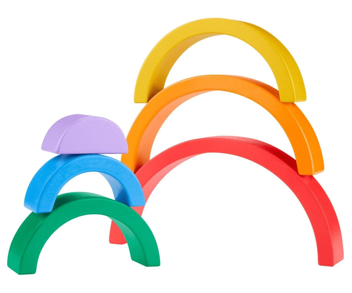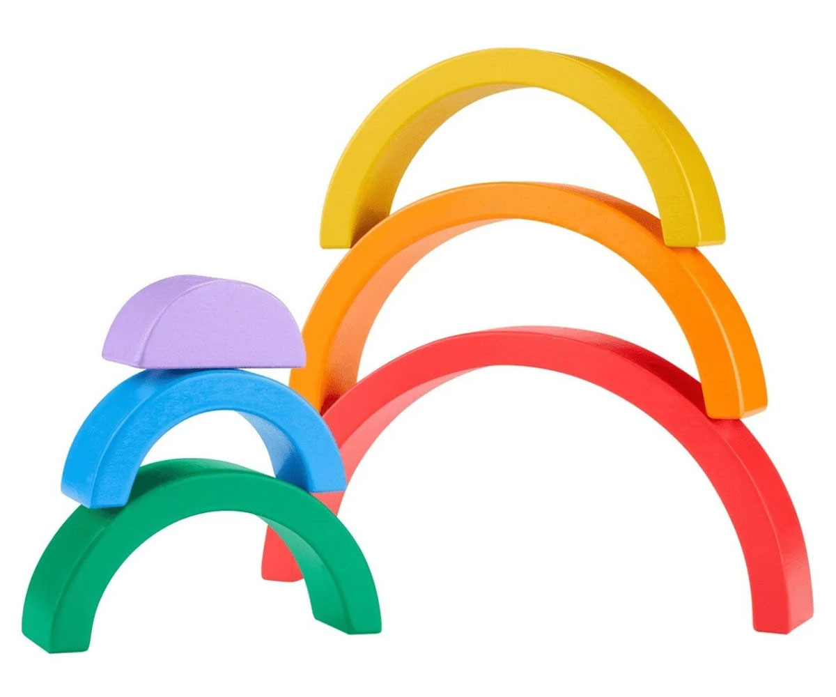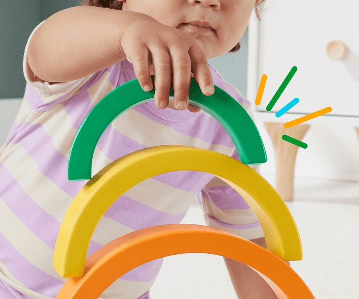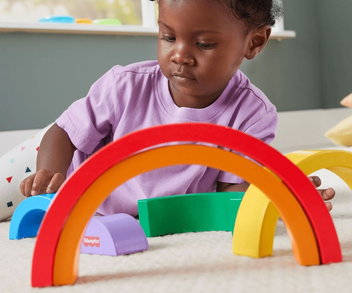 Малчуганите ще се забавляват с много игри за развитие на умения с дървената играчка за подреждане Дъга от Fisher-Price®. Шестте дебели и лесни за захващане дъгови арки помагат на детето да се запознае с цветовете, размерите и как нещата се съчетават. Всяко парче е изработено от дърво, добито от добре управлявани гори с FSC® сертифициране и помага за развитието на фини двигателни умения, докато децата играят.