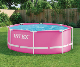 Наслаждавайте се на забавление на открито с басейнa Intex Frame Set. Той е достатъчно голям да събере всички членове на семейството. Устойчив и лесен за сглобяване този басейн има стилен и красив външен вид. След като сглобите металната конструкция и напълните басейна, летните забавления могат да започнат. Басейнът е изработен от устойчив на пробиване трислоен материал. Технологията, по която са произведени стените им дава изключителна издръжливост. Металната конструкция е изработена от здрави стоманени тръби с прахово покритие и е лесна за сглобяване. Благодарение на революционната филтърна помпа ще циркулира, филтрира и аерира водата във вашия басейн, за да поддържа всичко чисто и освежаващо. Инсталирането е безпроблемно и лесно. Помпата работи със сменяем филтър тип А, който се почиства или заменя периодично в зависимост от замърсеността. Филтрите са лесни за подмяна и почистване.