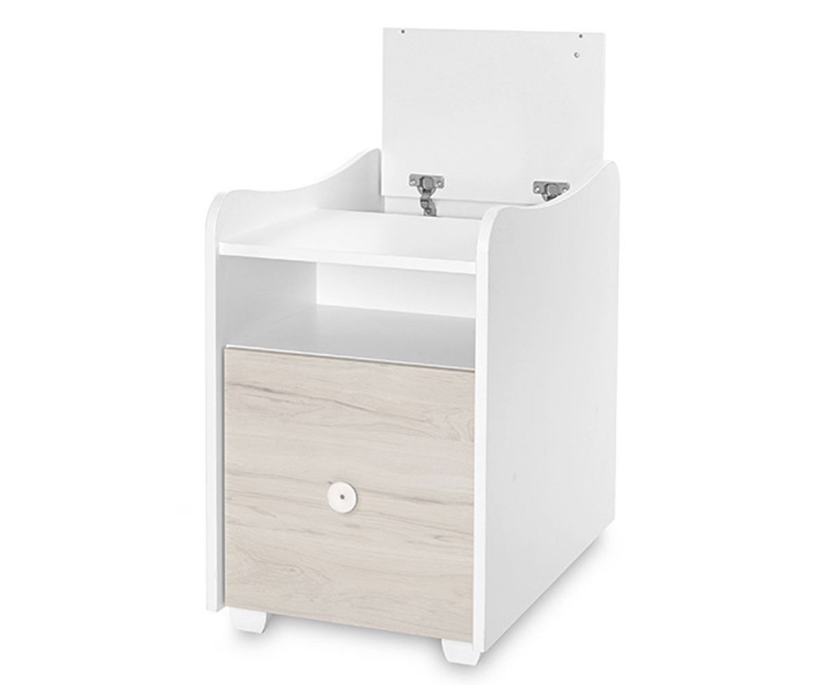 - Многофункционален шкаф с плот за повиване, 2 рафта и ракла с капак с вградена дръжка и безшумно затваряне (монтира се в ляво или дясно);