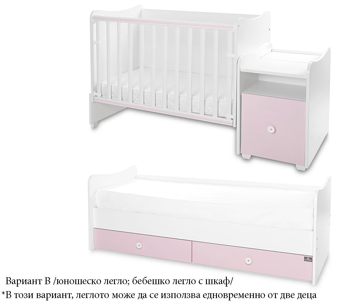 - Вариант В - юношеско легло, бебешко легло с многофункционален шкаф;