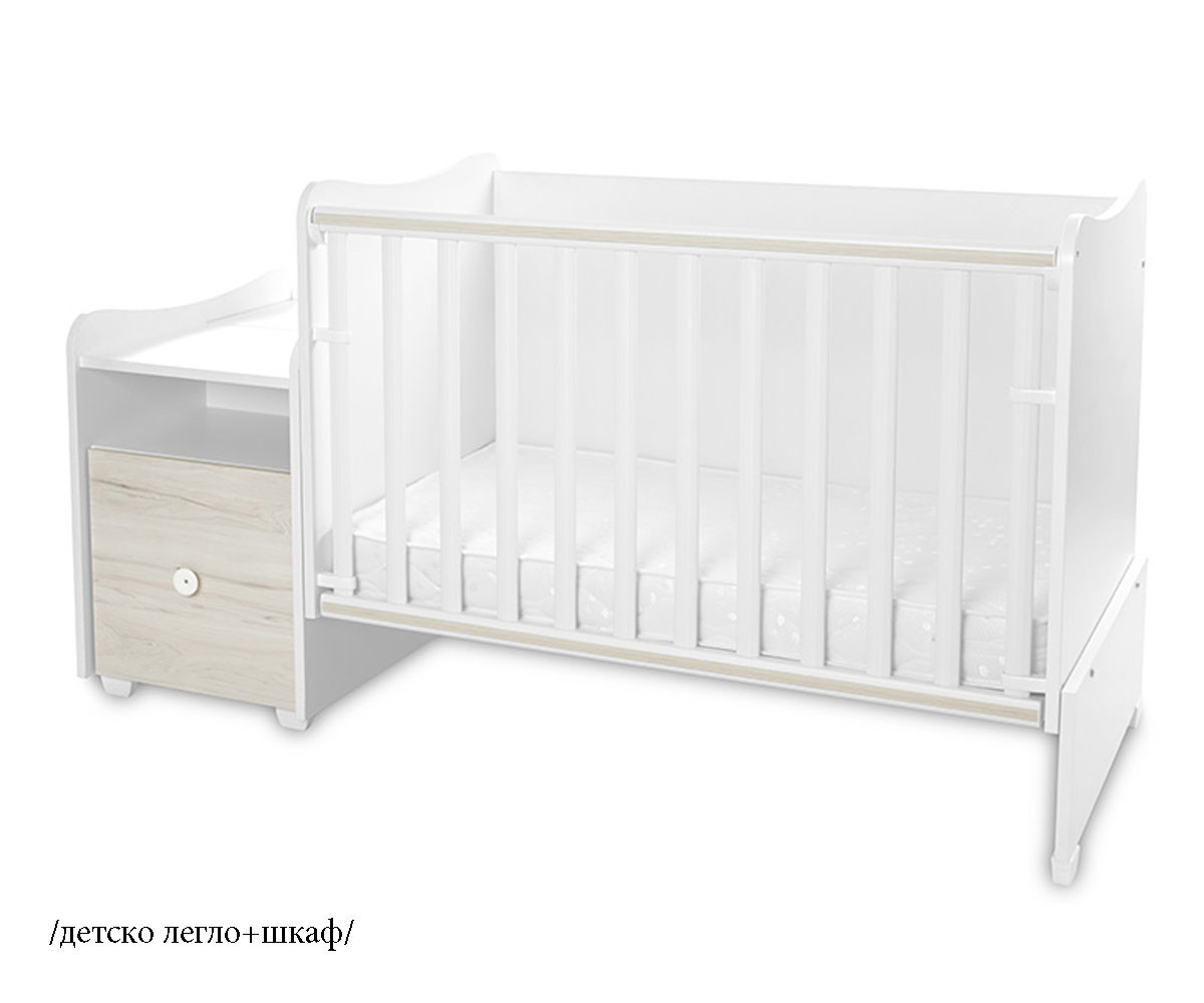 - Бебешко легло с многофункционален шкаф - външни размери: 159 х 71 х 87 см;