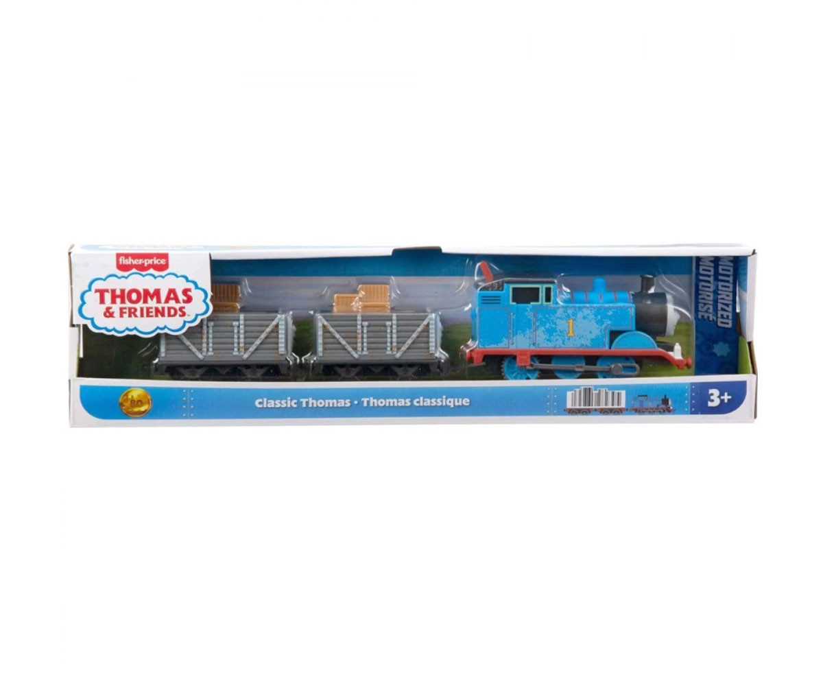 Пътувайте из остров Sodor с моторизирания влак Thomas & Friends! Всеки влак с вагон пресъздава емблематични моменти от любимите серии Thomas & Friends и All Engines Go. Децата могат да включат влака чрез превключвателя отгоре и да наблюдават как той се движи по релсите (предлагат се отделно). Благодарение на пластмасовите конектори, влаковете могат да се свързват с други влакове и вагони от серията Thomas & Friends.