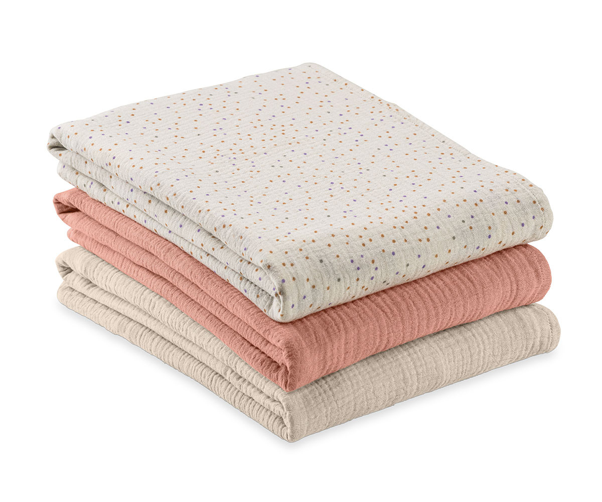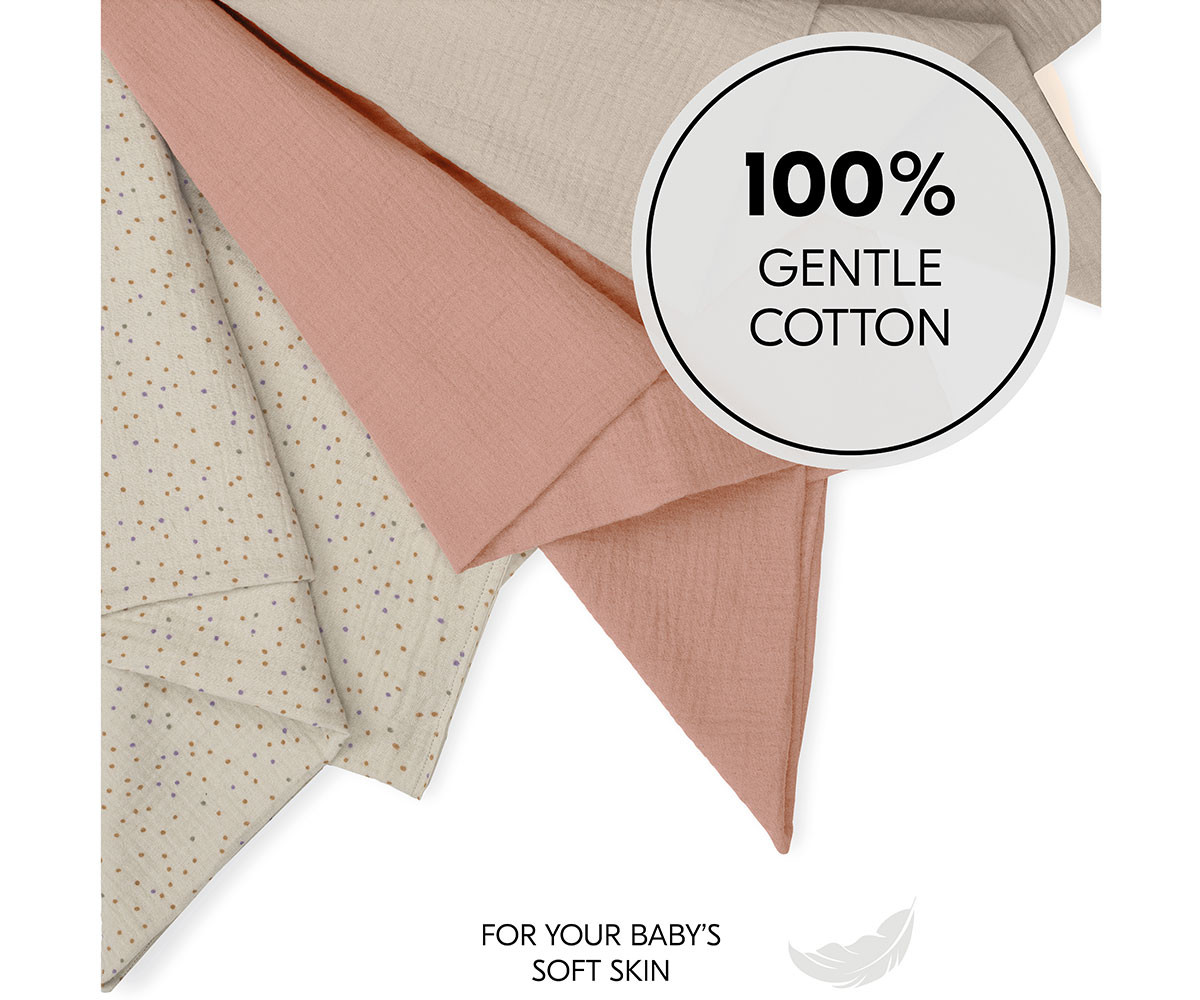 Hauck - Комплект пелени от муселинов памук 80 х 80 см, Cuddle N Clean, 3 броя Beige Dots/Cork/Beige