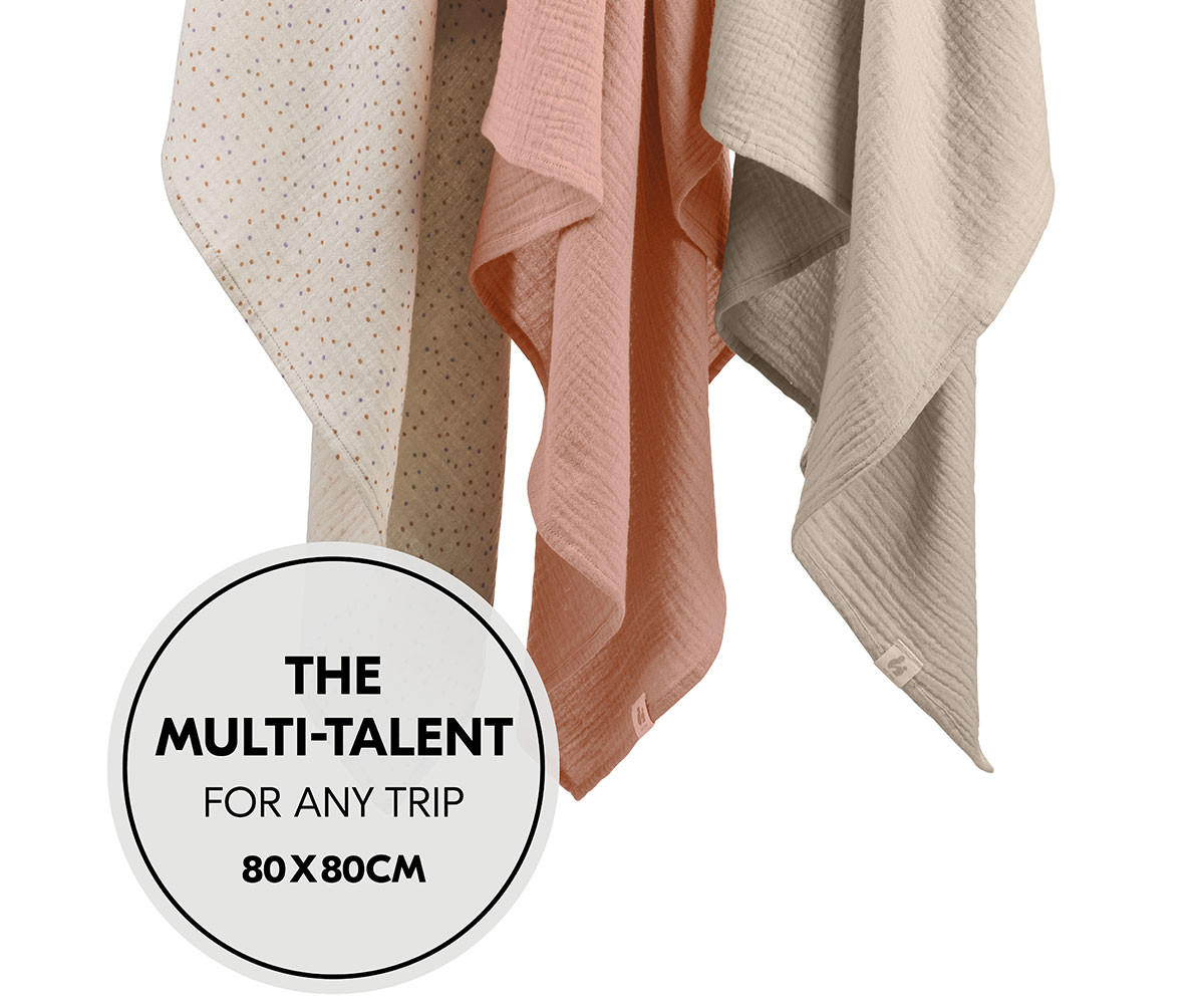 Универсалният комплект муселинови кърпи Cuddle N Clean е незаменим помощник в ежедневието с бебе - истински мултифункционален аксесоар за всяка ситуация. С големия си XL размер от 80 x 80 см кърпите предлагат разнообразни приложения: като кърпа за оригване, пелена за повиване, постелка за ежедневна употреба, лека завивка, защита от слънце, шал, кърпа при хранене или допълнителна пелена. Кърпите за оригване са сред най-необходимите бебешки принадлежности, тъй като новородените често връщат мляко или храна без предупреждение. С Cuddle N Clean винаги ще можете да защитите вашите и бебешките дрехи или да почистите бързо и лесно. Изработени от висококачествен 100% памучен муселин, кърпите могат да се перат в пералня при 60°C. Те съхнат бързо и са готови за следващото приключение заедно с вашето бебе.