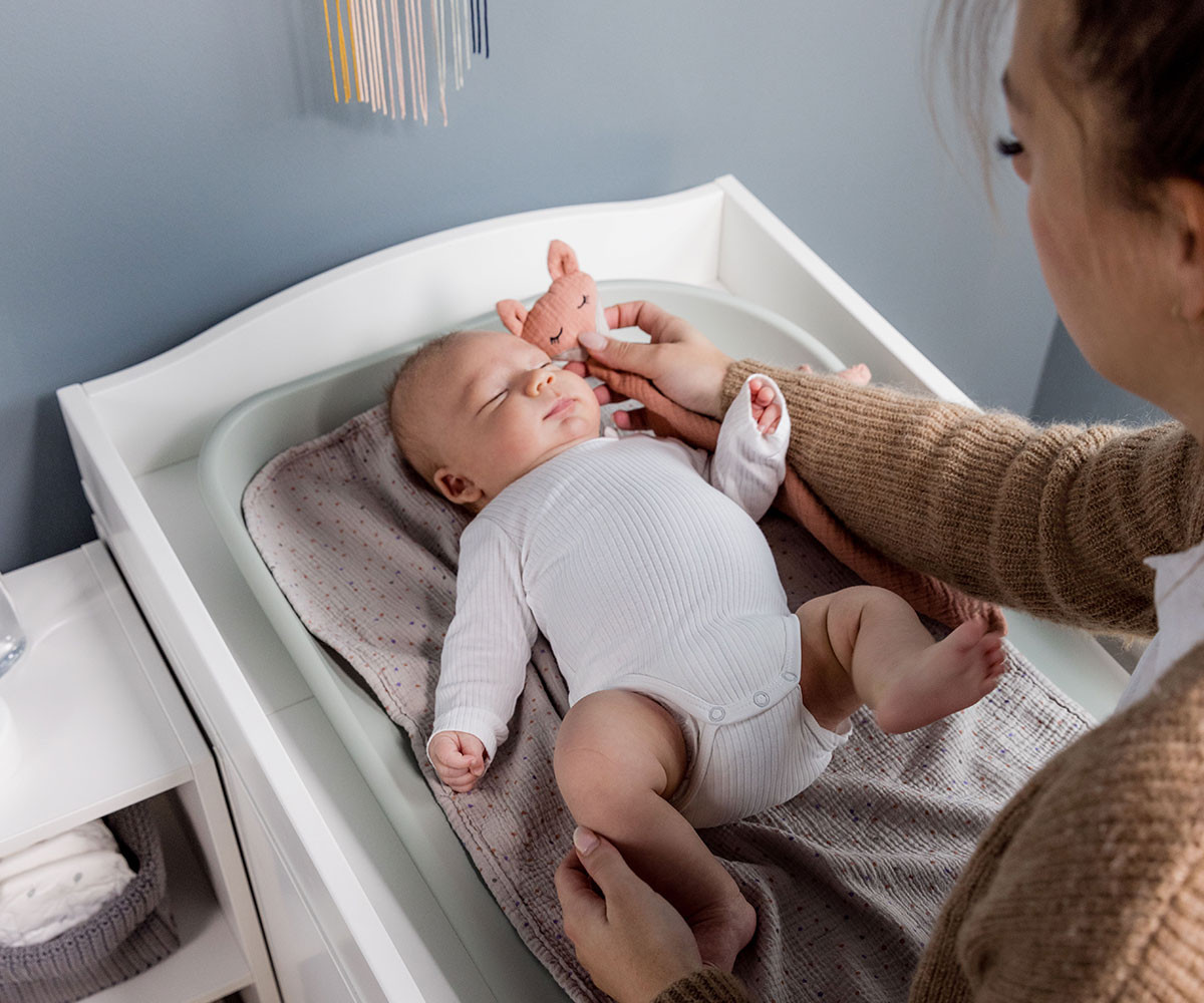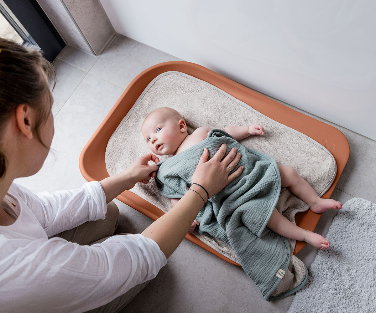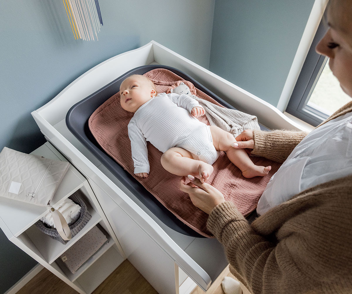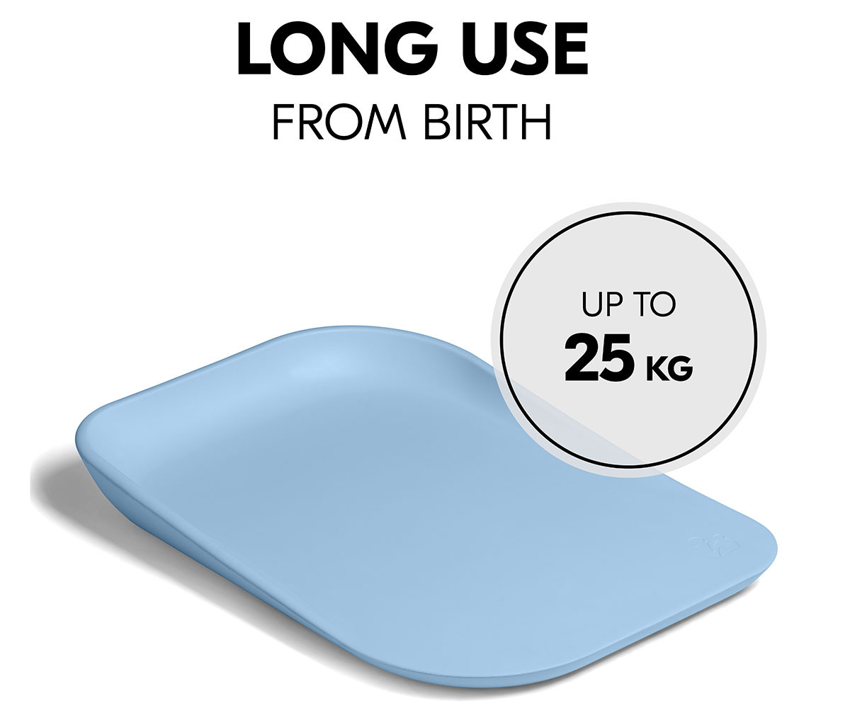 Подложката за повиване е изработена от висококачествени материали и е подходяща за бебета и малки деца от раждането до достигане на 25 кг. След смяна на пелените, гладката, водоотблъскваща повърхност лесно може да бъде почистена с влажна кърпа или мек почистващ препарат. Подложката за повиване е без вредни вещества и е тествана съгласно европейския стандарт, за да осигури здравословен старт на живота на вашето бебе.