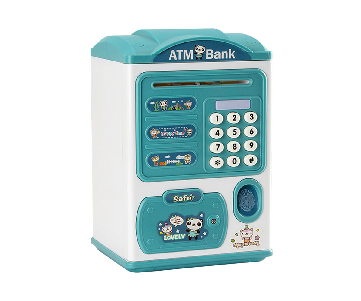 Детска касичка ATM Bank със сензор за пръстов отпечатък. Забавна и образователна играчка-касичка, която помага на децата да се научат да спестяват по интересен начин. С дизайн на мини банкомат, тази касичка предлага реалистично преживяване и различни функции, които правят спестяването истинско удоволствие.
