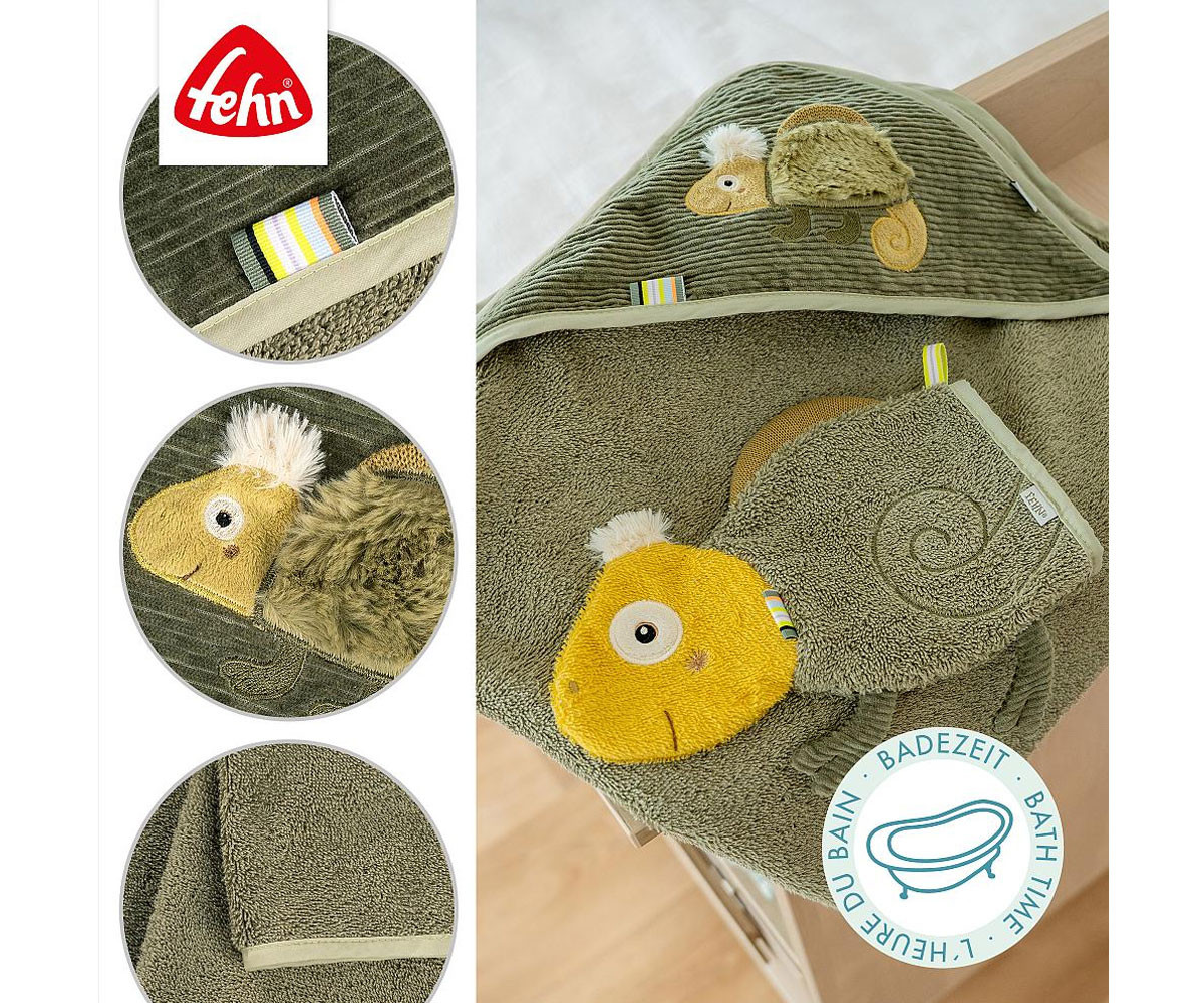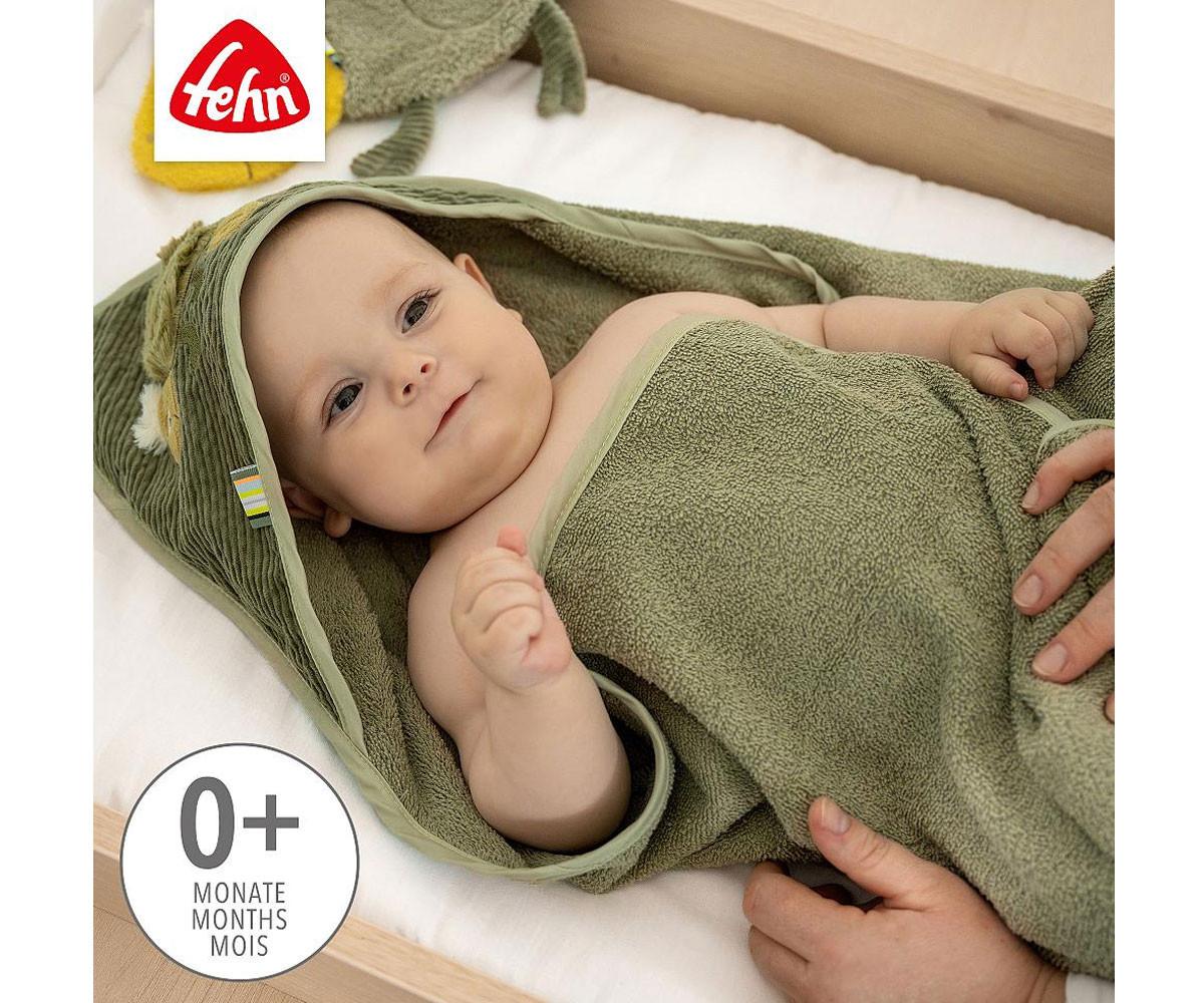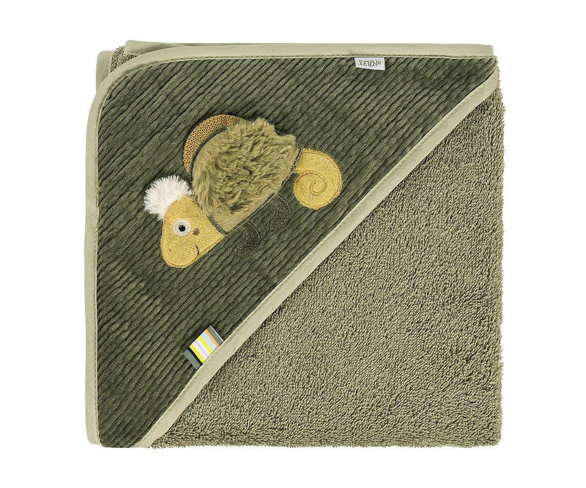Мека бебешка хавлия с качулка „Хамелеон“ – уют и топлина след всяко къпане. След баня у дома, плуване в басейна или забавления на плажа – тази супер абсорбираща бебешка хавлия с качулка ще обгърне малкото нежно и ще го предпази от студ и течение. Очарователната апликация на хамелеон и нежните цветове създават чувство за сигурност и уют. Качулката поддържа главичката топла, а меката материя носи приятно усещане при всяко завиване. Издръжливата тъкан остава мека и след често пране – идеална за ежедневна употреба.
