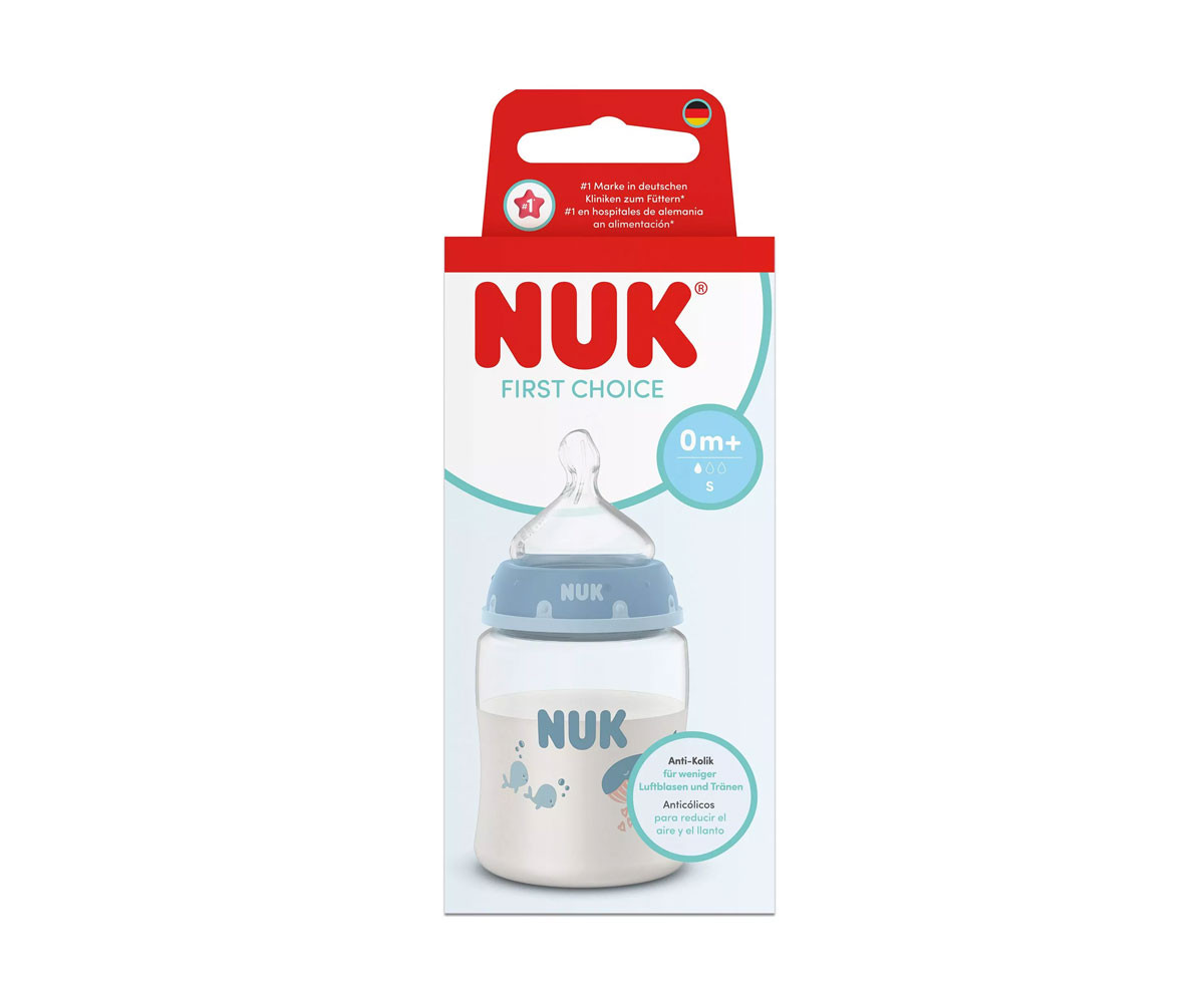 - Име: Nuk - Пластмасово шише Termo Control First Choice, 150 мл, силиконов биберон размер S, 0м+, Кит, момче