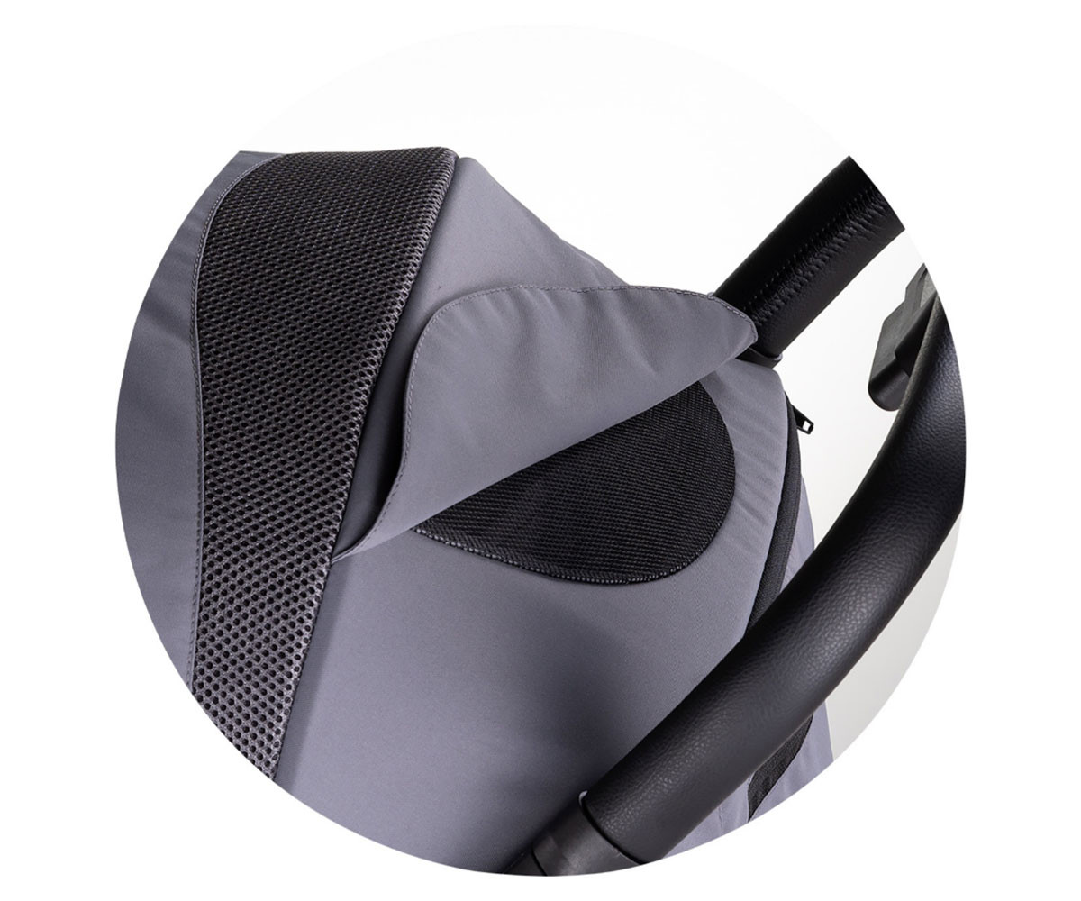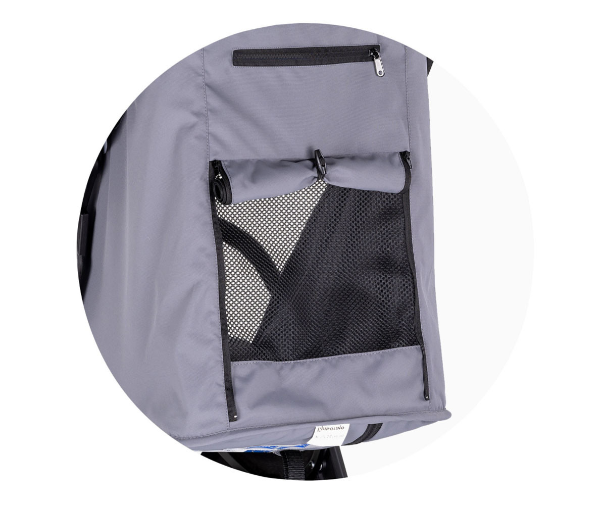 - Голям регулируем сенник с прозорец за наблюдение, козирка и джоб за аксесоари;