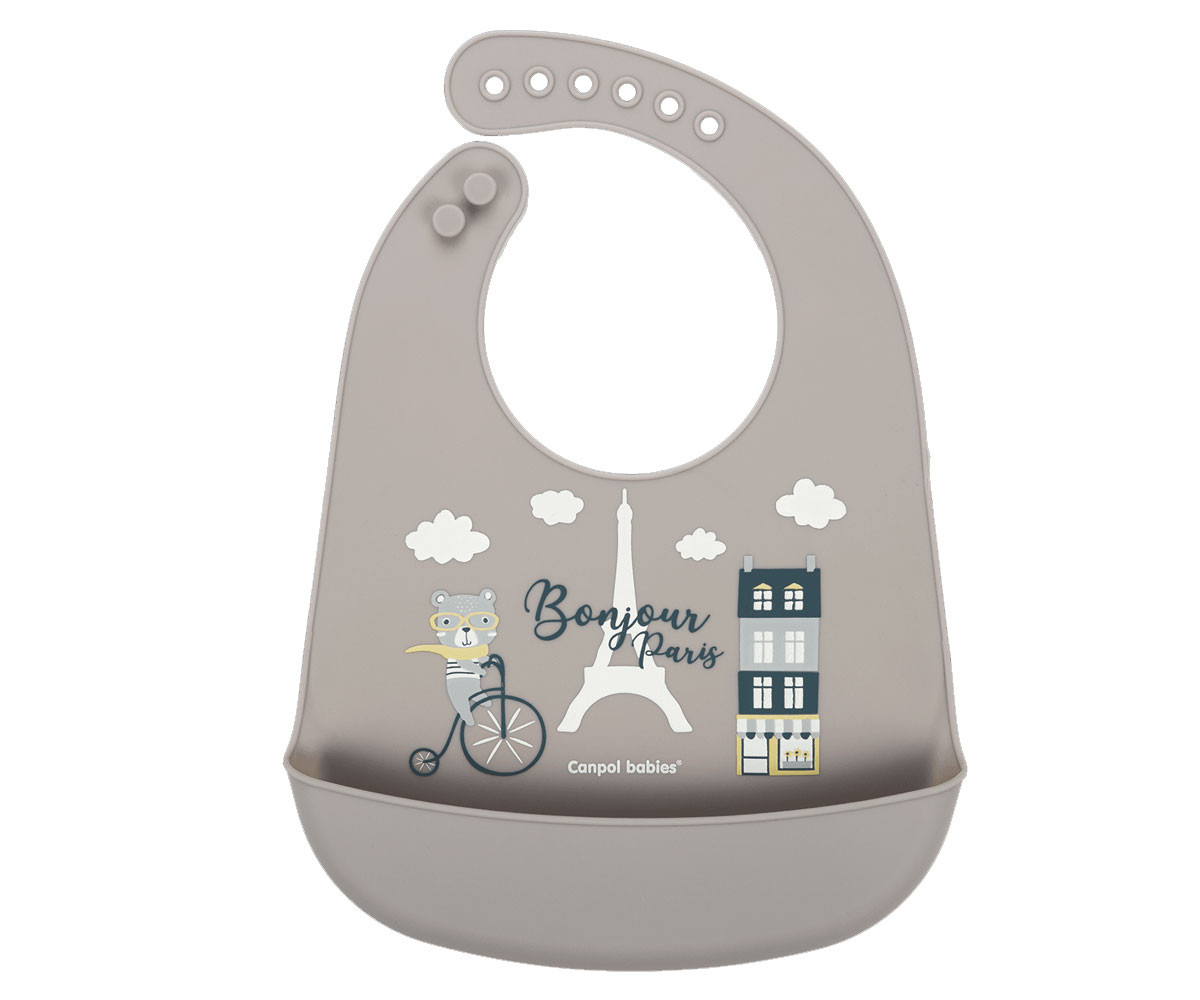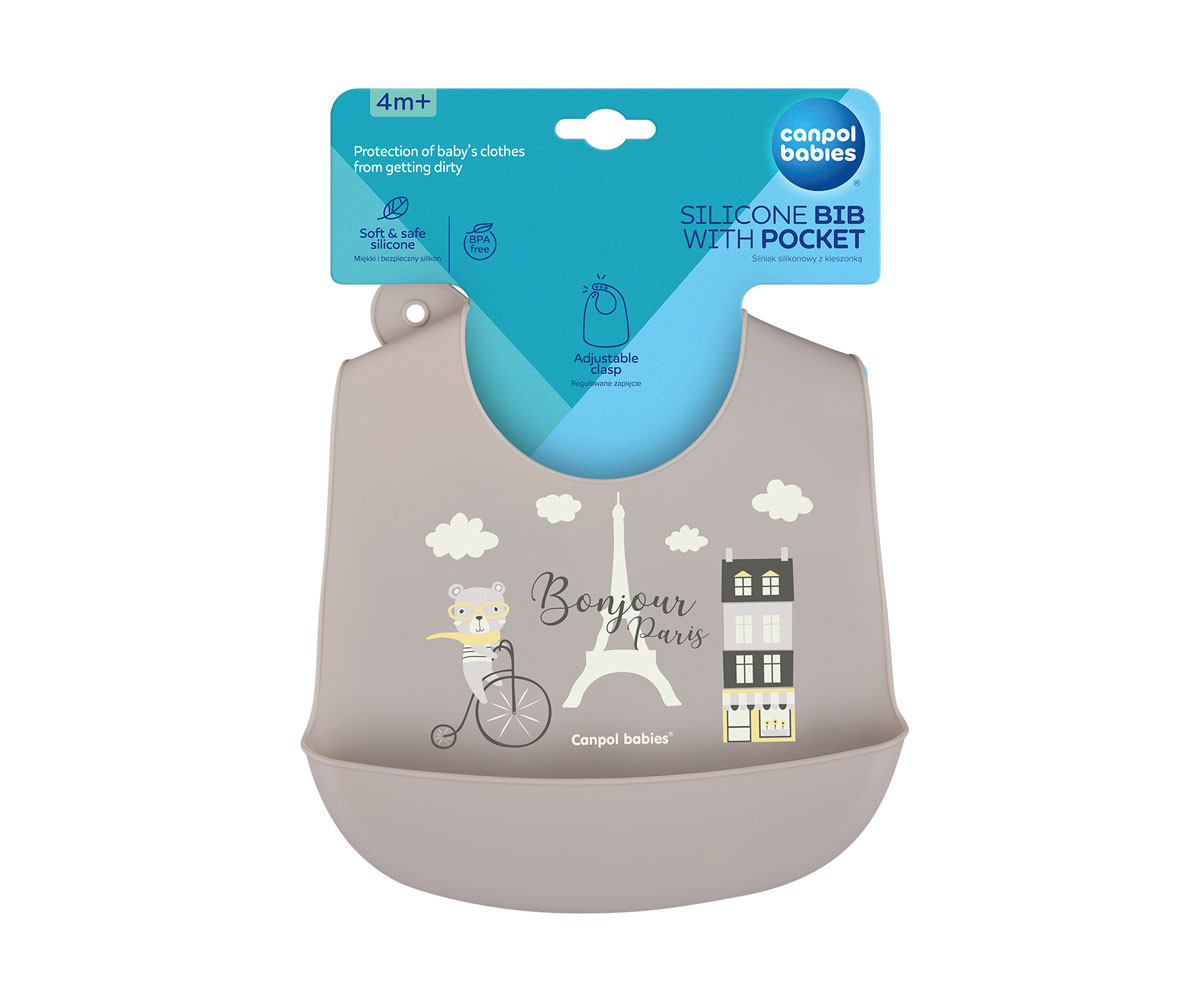 Canpol - Силиконов лигавник с джоб Bonjour Paris, бежов