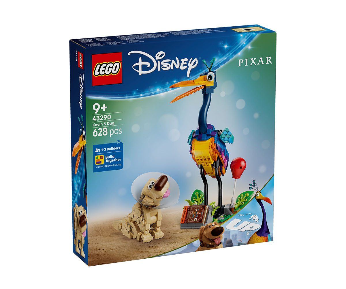 Приключения очакват децата на възраст от 9 години с този комплект за конструиране на играчки LEGO® ǀ Disney и Pixar "Кевин и Дъг" (43290). Този комплект за построяване от филма В небето включва за първи път в играчка от тухлички на LEGO ǀ Disney и Pixar героите-животни, птицата Кевин и кучето Дъг. Има и стойка с подвижни листа и място за книгата "Моето приключение“, червен балон, предпазен конус, специалната яка на Дъг и др. Героите могат да вдъхновят въображаема игра или да се превърнат в творчески експонат на рафт или бюро. Тази детска играчка за конструиране е страхотна идея за подарък от Disney за семейства, момичета и момчета за рожден ден или празник и може да се добави към други комплекти LEGO и играчки за конструиране LEGO ǀ Disney (продават се отделно). Удовлетворете любовта на детето към фентъзи филмите с конструктор, който предлага забавни възможности за игра. Освен това можете да се обедините с приятели и семейството с функцията „Да строим заедно“ в приложението LEGO Builder, където всеки се забавлява с построяването на част от комплекта със собственото си устройство. Комплектът съдържа 628 части.