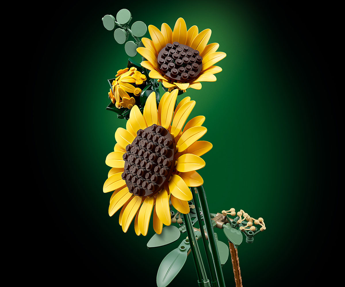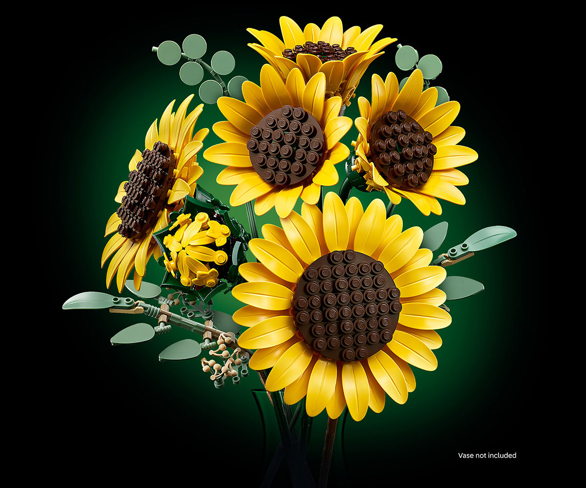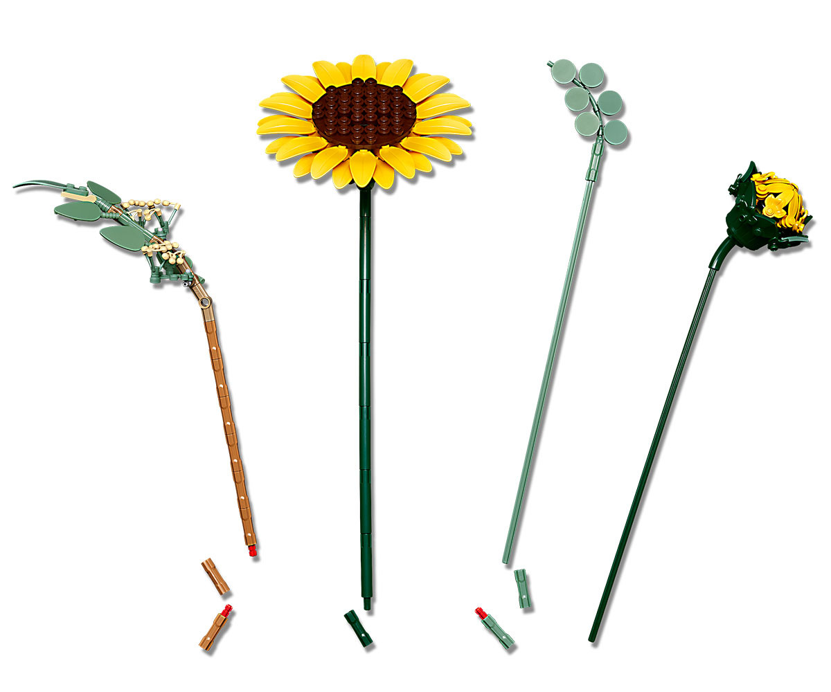 - СЛЪНЧОГЛЕДИ LEGO® - букетът включва 6 слънчогледи на различни етапи: 1 пъпка слънчоглед, 3 слънчогледи, които започват да цъфтят, и 2 големи напълно отворени слънчогледи;