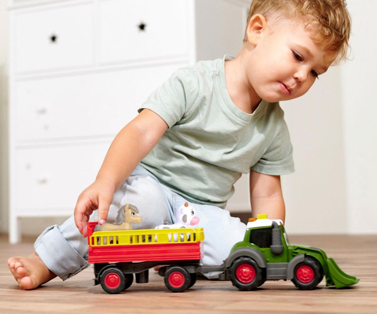 Весело приключение във фермата започва с ABC Fendti - лицензирания трактор Fendt с ремарке за животни и крава! Създаден специално за малки ръчички, този 30-сантиметров трактор е идеален за бутане и игра още от 1-годишна възраст.