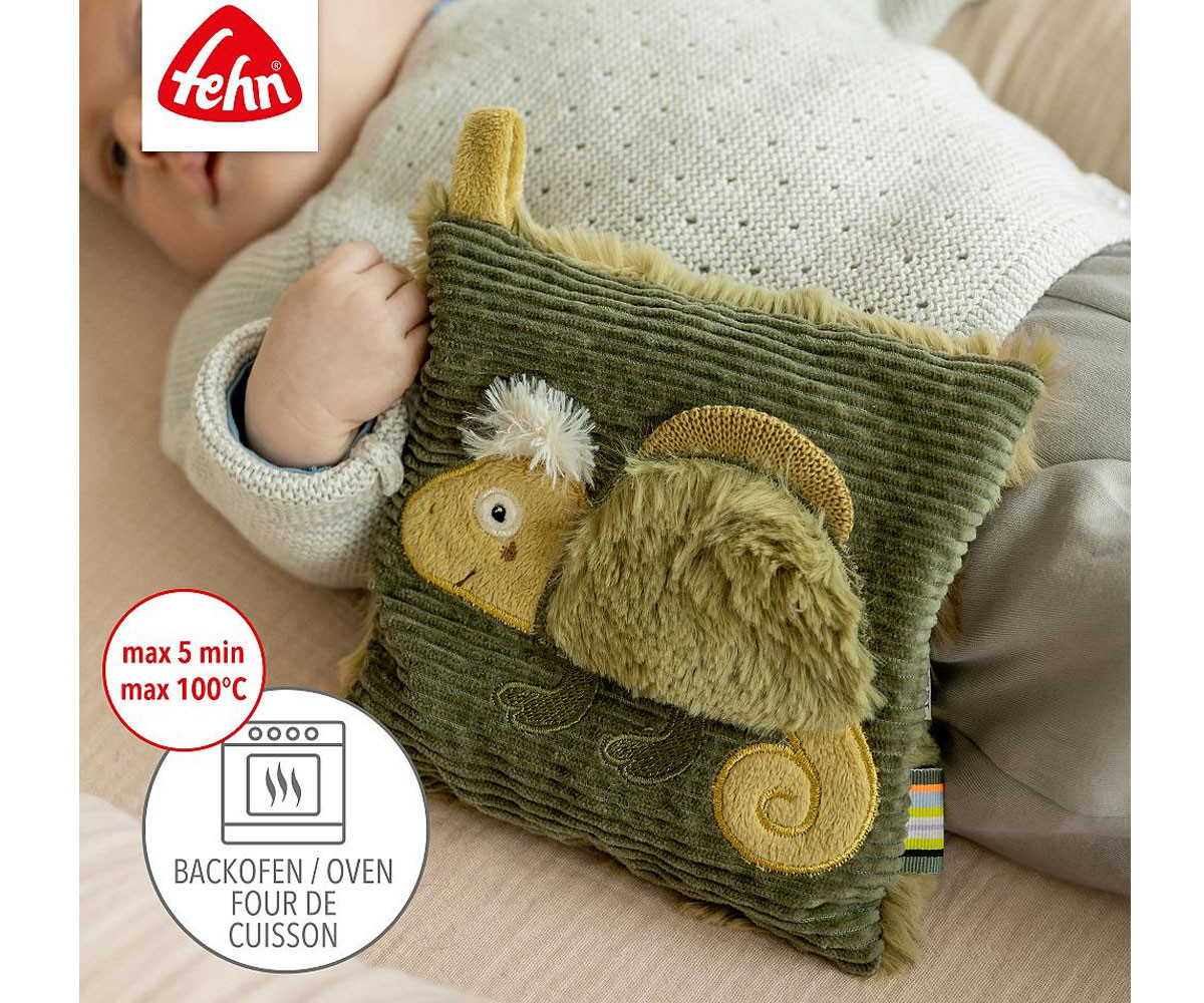 babyFEHN - Затоплящ и охлаждащ компрес с черешови костилки Хамелеон Lazy, Crazy & Pink, 16x16 см