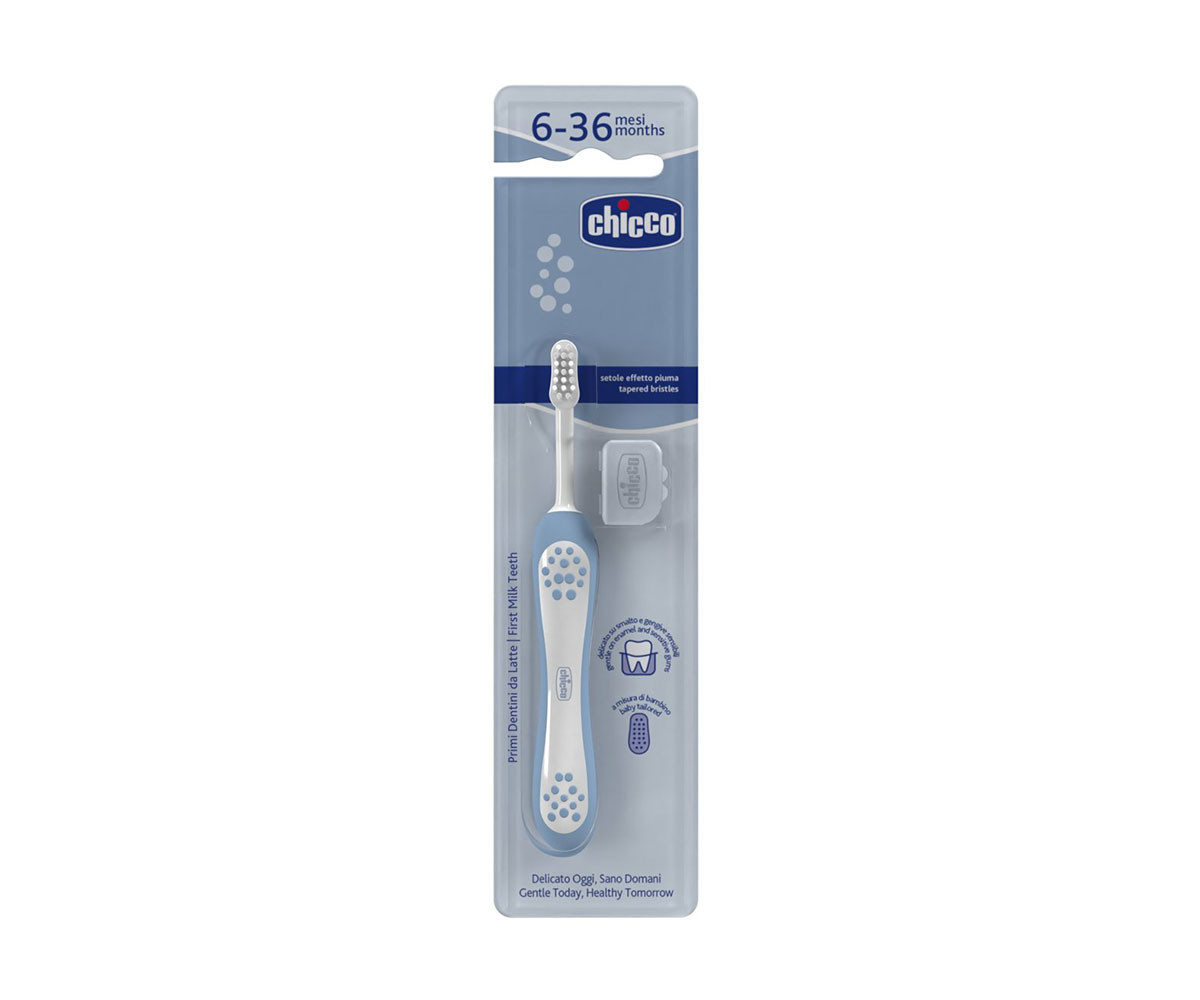 Иновативните изключително меки влакна със „заострена технология“ са нежни към раздразнените венци и изключително меки за деликатно действие, като същевременно осигуряват правилно почистване на млеечните зъби. Вратът е леко наклонен, за да достигне задните ъгли на устата. С голяма, мека дръжка против хлъзгане, която може лесно да се хване от мама, татко и деца. Забавните декорации ще накарат малките да се усмихнат. Включено предпазно капаче.