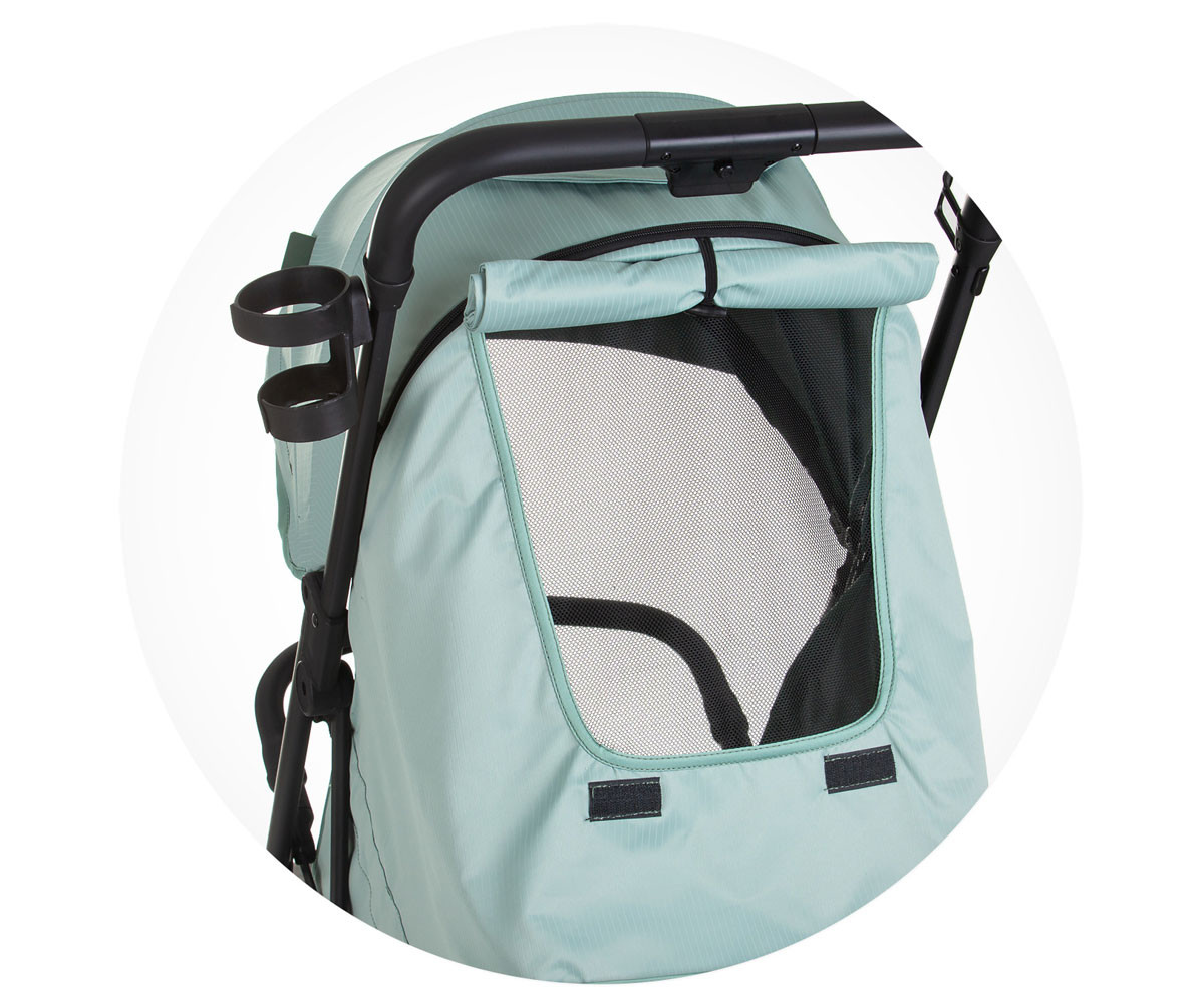 - Голям регулируем сенник с прозорец за наблюдение на детето, джоб за аксесоари и голяма козирка;