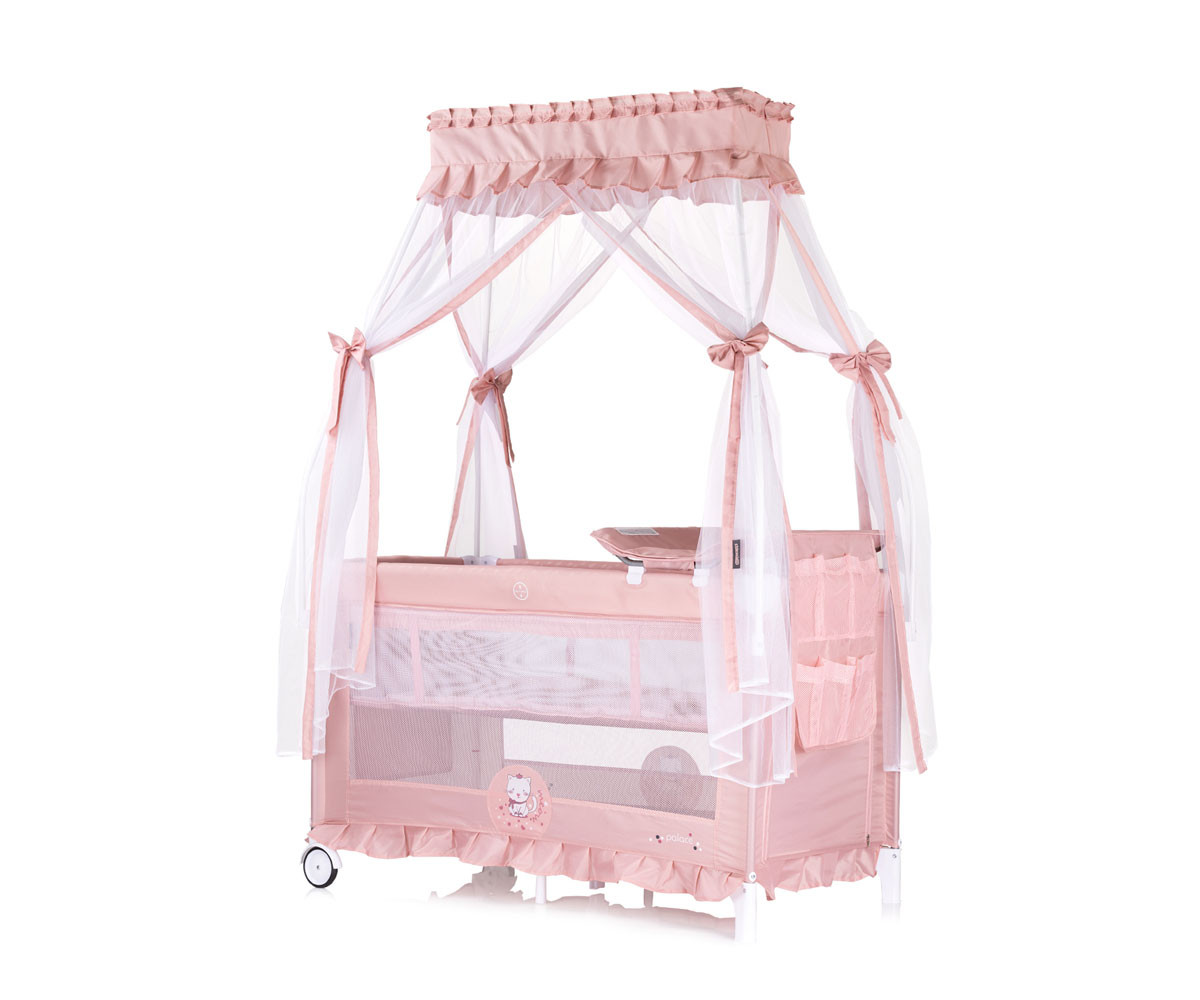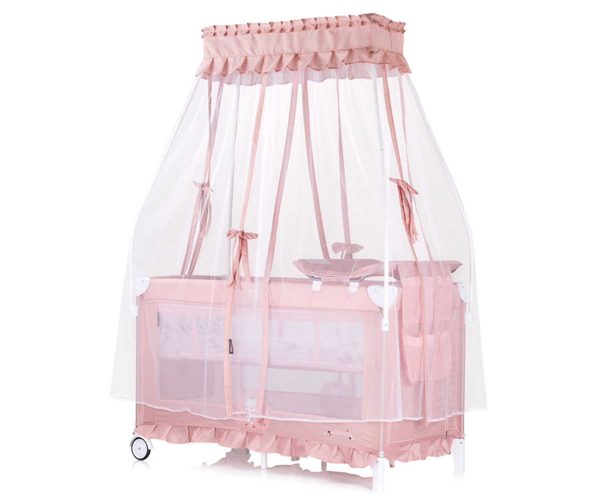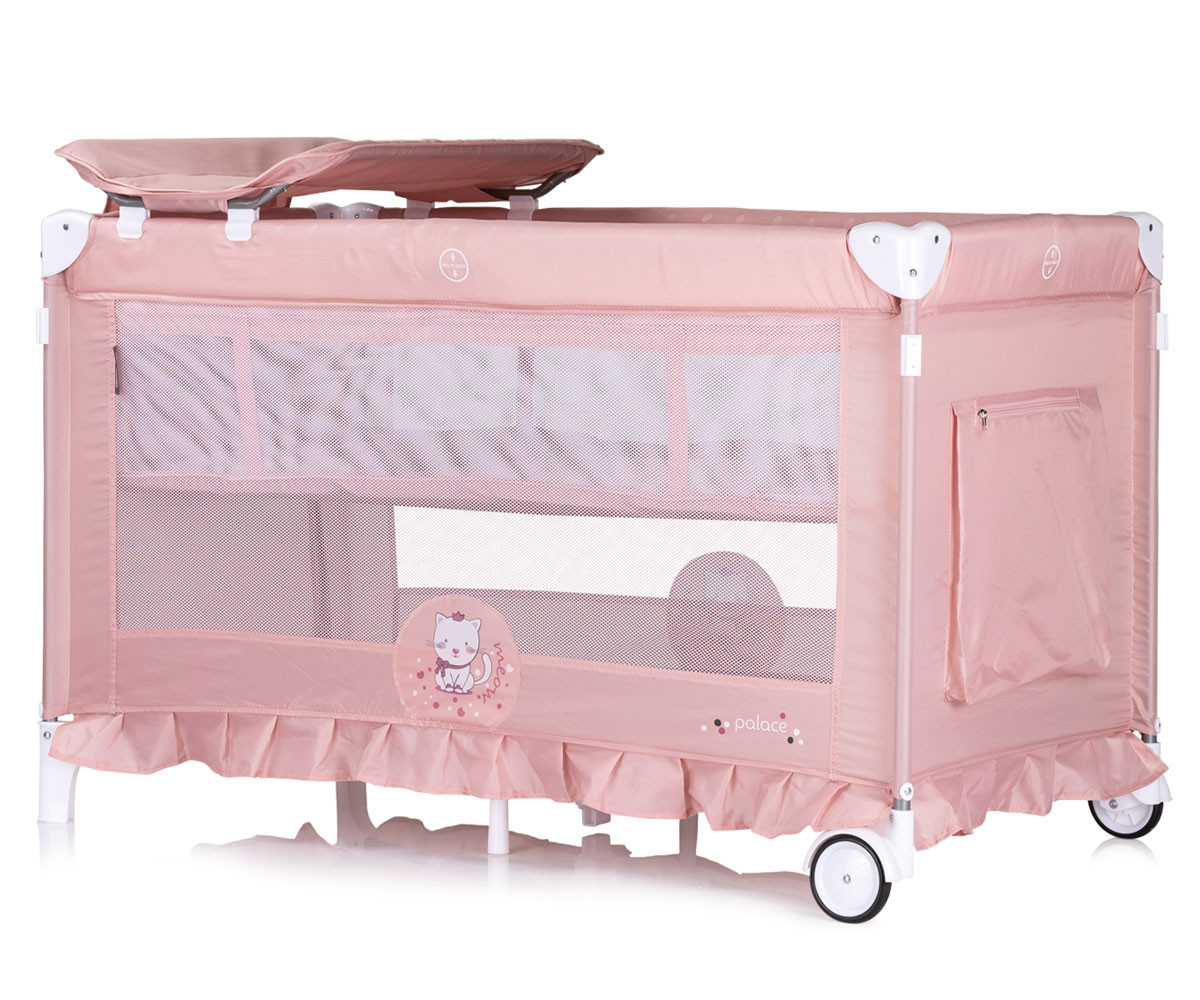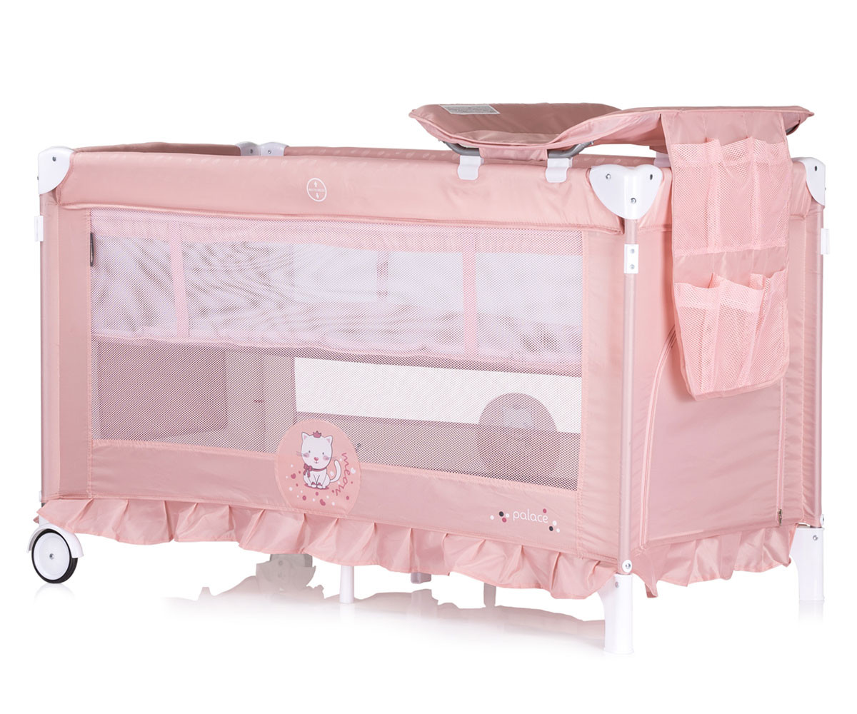 Chipolino - Преносима бебешка кошара 2 нива за спане и игра Palace, Коте розова