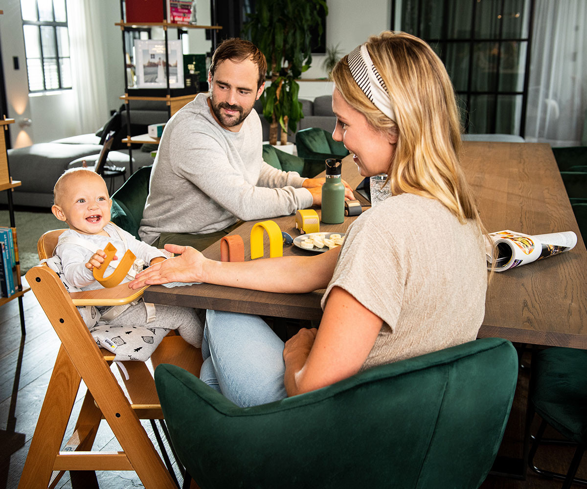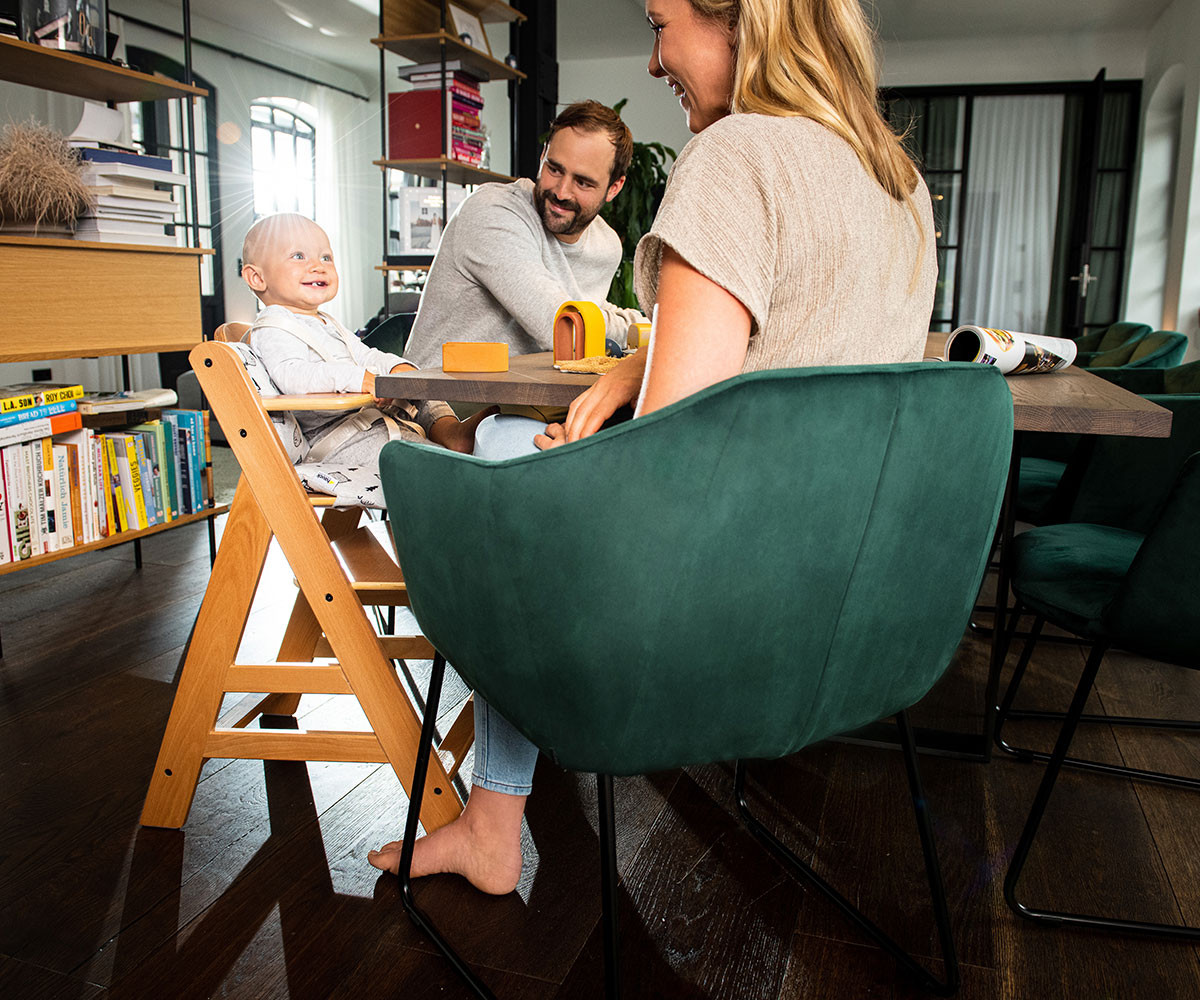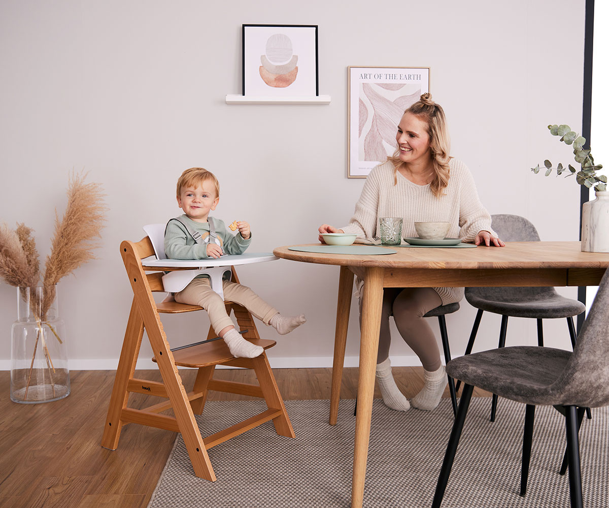 Alpha+ - дървеното столче за хранене, което расте заедно с детето.