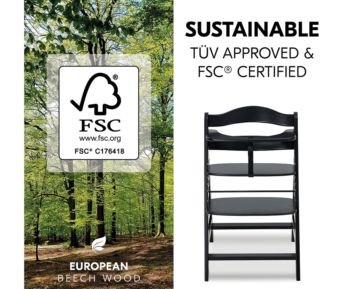 Столчето за хранене Alpha+ е произведено от европейски бук от FSC® сертифицирани гори, където се залага на устойчиво и екологично горско стопанство с грижа за природата и животинските видове. Благодарение на регулируемите седалка и поставка за крачета, столчето се адаптира към растежа на вашето дете. Здравата и стабилна конструкция позволява използване до максимално натоварване от 90 кг, което го превръща в дългосрочно решение за цялото семейство.