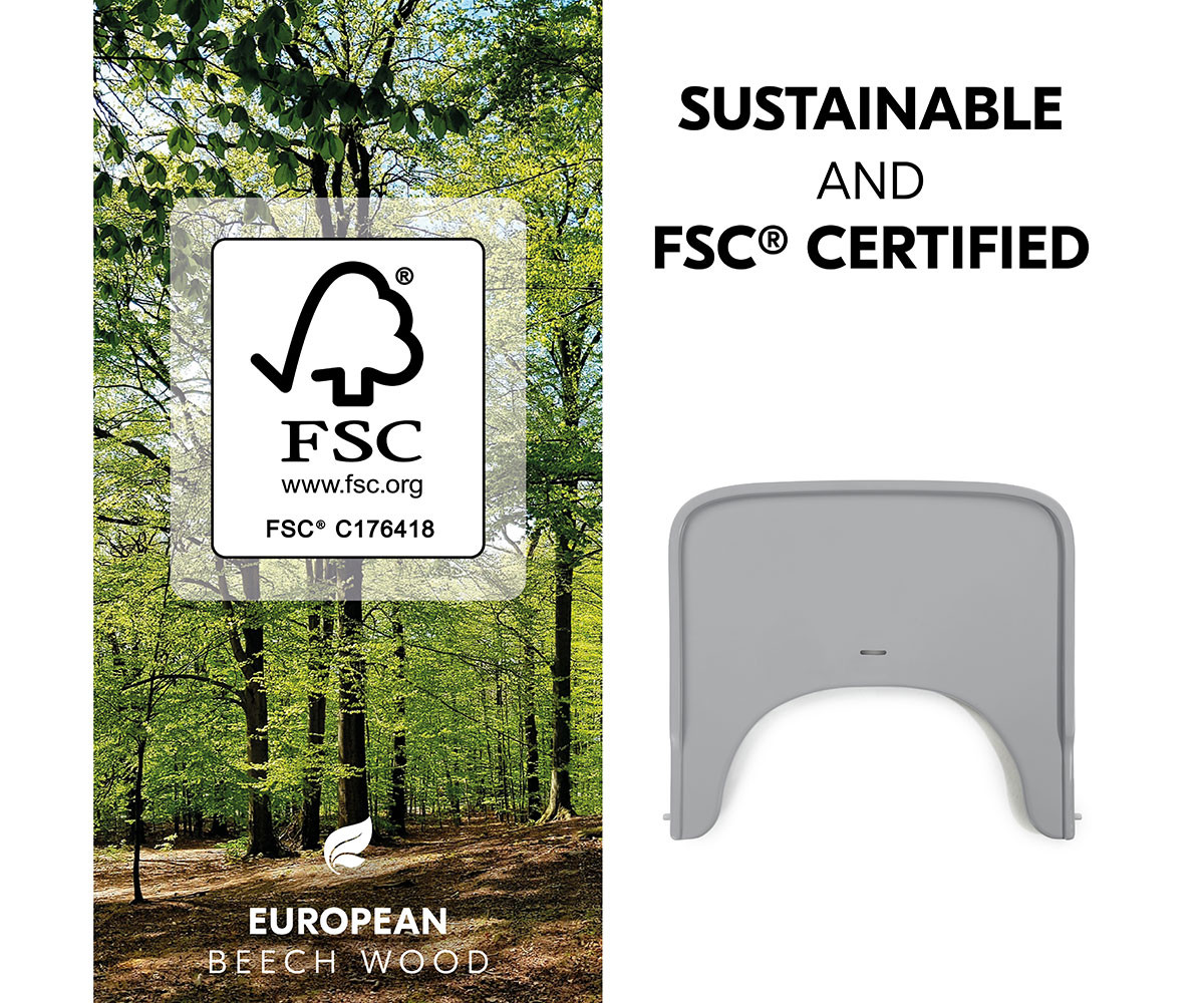 Устойчива масичка/табла за столче за хранене от 6 месечна възраст на детето. Дървената масичка/табла за столче за хранене е изработена от европейски бук, произхождащ от сертифицирани от FSC® гори, които ценят устойчивото и екологично лесовъдство за защита на растенията и животните.Може лесно да се закрепи върху вашето столче за хранене Alpha+, предоставяйки на вашето дете повече индивидуално пространство за хранене и игра от 6 до 36 месеца. Независимост, безопасност и комфорт за вашето дете. Благодарение на това, че таблата е съвместима с 5-точковия колан и предпазната лента на столчето за хранене, вашето дете е добре обезопасено в Alpha+. Подносът предлага достатъчно място за чинии, чаши и играчки. Независимо дали е във всекидневната, кухнята или банята, благодарение на таблата на вашия Alpha+, вашето дете може да седи винаги близо до вас. Благодарение на здравия материал, подносът може да се използва за дълго време. Повдигнатият ръб предотвратява изпадането на играчки или разливи. Гладката повърхност може лесно да се избърше с кърпа и почистващи продукти.