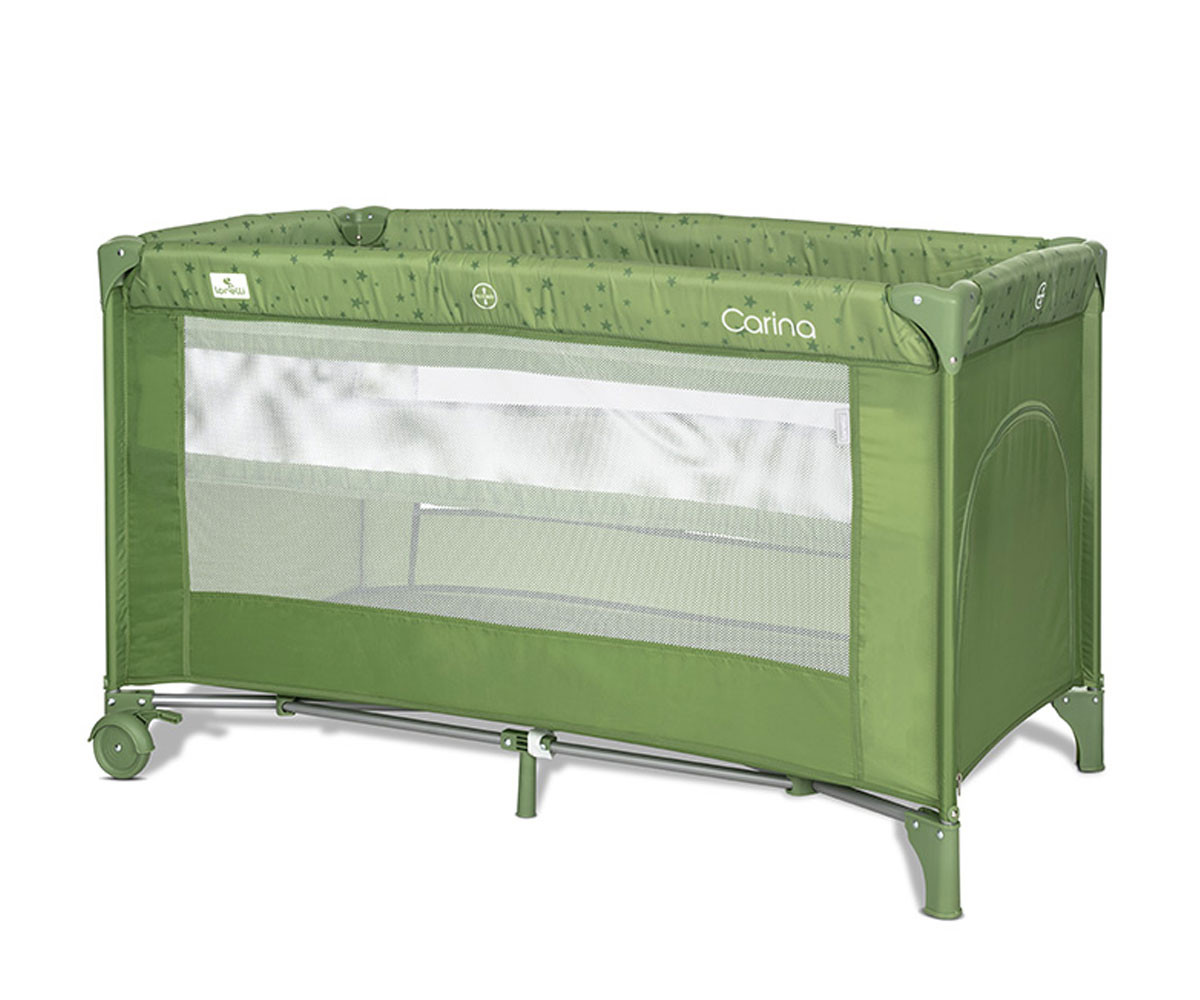 Lorelli - Преносима бебешка кошара за спане и игра на 2 нива Carina, Green Stars